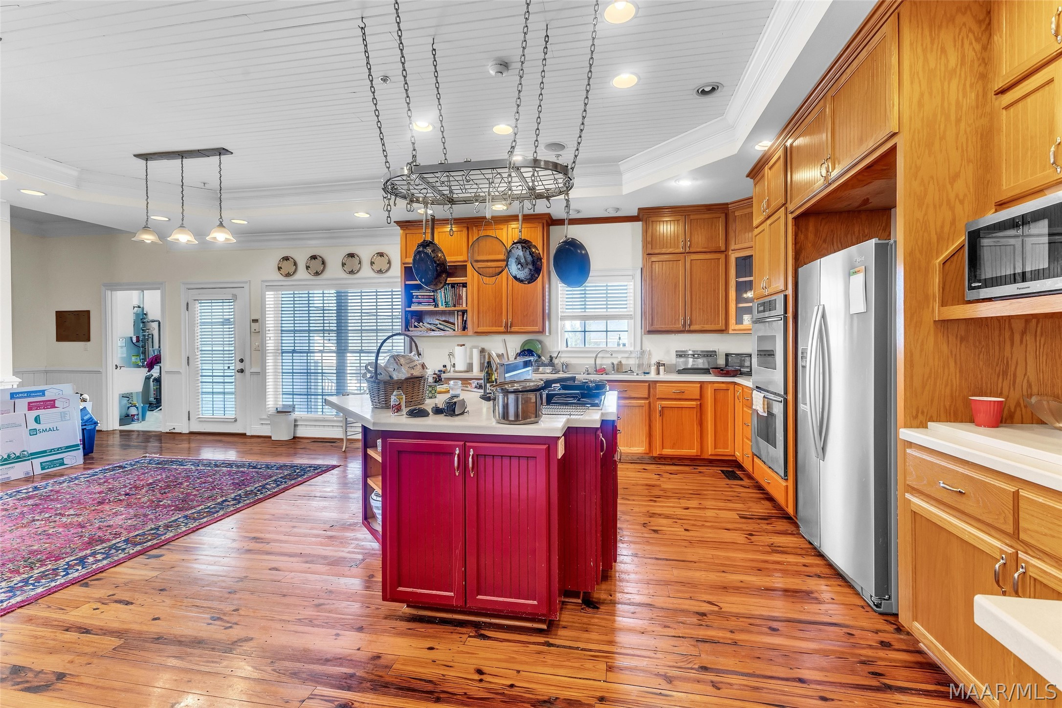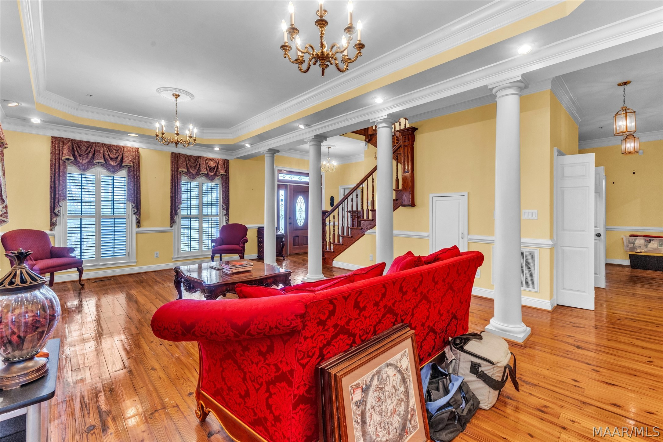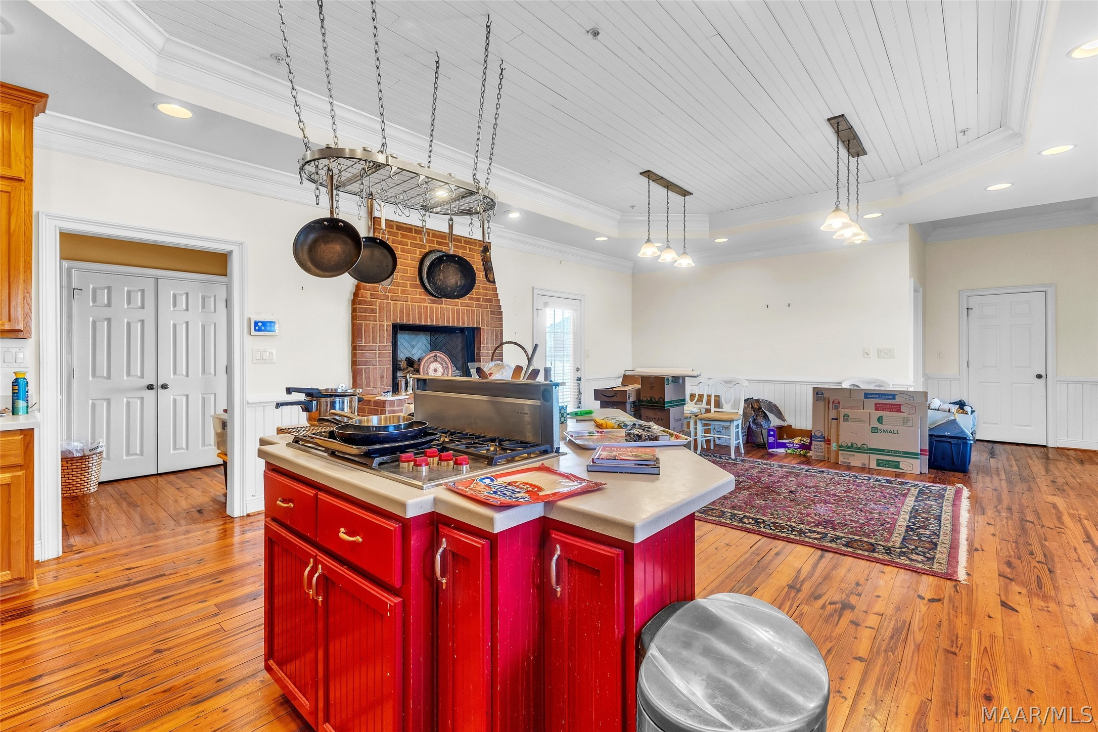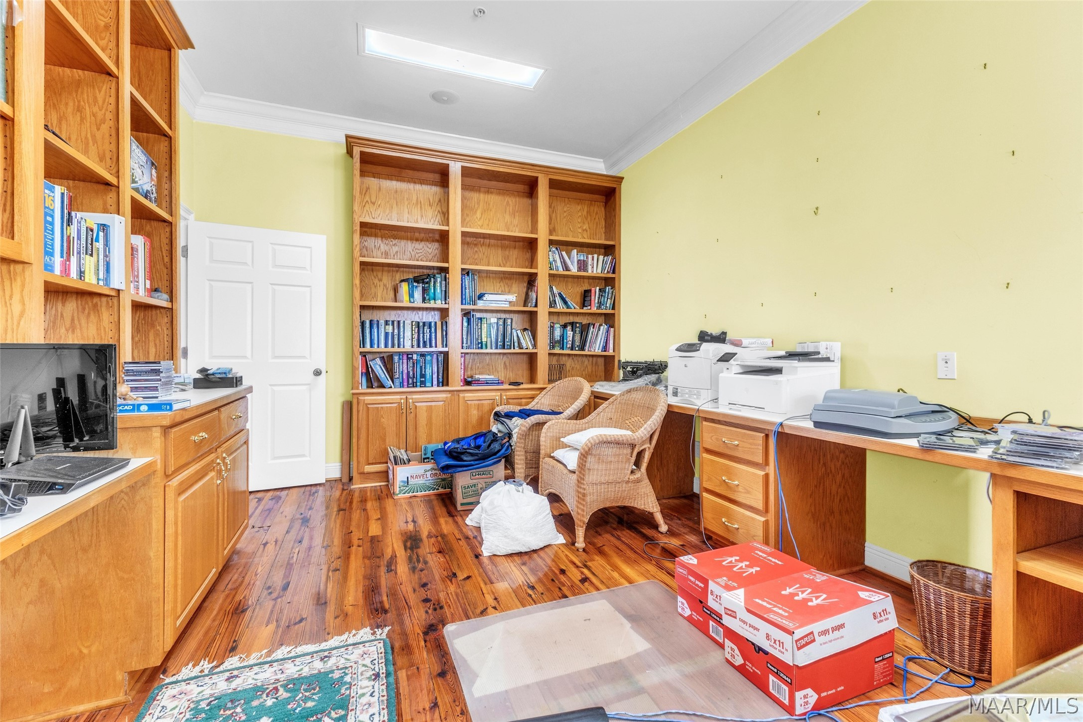 Located on Highway 80 near the airport, this exceptional 30-acre estate offers privacy, space, and timeless character with thoughtfully designed living and entertaining areas. Rich reclaimed hardwood floors span the entire downstairs, setting the tone for the home’s warmth and craftsmanship. The spacious living room features a fireplace, while the inviting den room is equipped with custom built-in cabinetry, drop-down screen, and projector. Plantation shutters add classic elegance. Formal dining room designed to host on a grand scale, complete with built-in cabinetry, and ample space for an oversized dining table. A wet bar enhances entertaining, while the kitchen is truly the heart of the home—featuring a large work island, gas cooktop, refrigerator, expansive breakfast room, and a stunning raised brick fireplace ideal for gathering with family and friends. Just steps away, a dream pantry offers exceptional storage and a wine cooler. The primary suite is extraordinarily spacious and includes a cozy fireplace with gas logs. The luxurious bath boasts double vanities, separate shower, garden tub, and two oversized walk-in closets. A private study with additional built-in cabinetry is located on the first floor, along with a well-appointed laundry room offering sinks and generous counter space. Upstairs, you’ll find four additional bedrooms—five total in the home. The fourth bedroom provides flexibility as an optional bedroom or additional study. Two Jack-and-Jill baths serve the upstairs bedrooms. Storage is abundant.