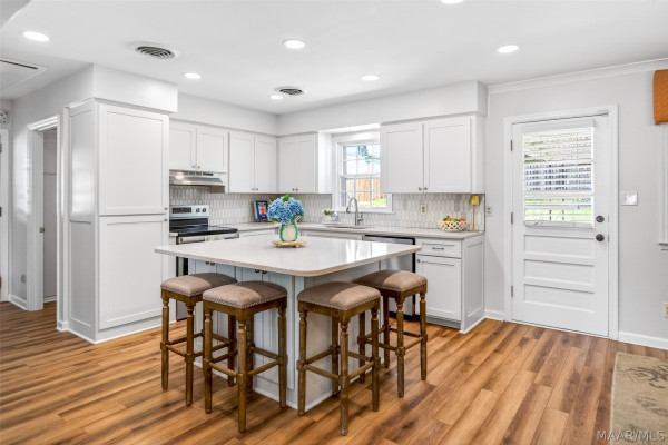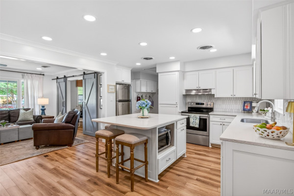 Inside, you’ll love the open floor plan designed for easy everyday living and entertaining. The kitchen was beautifully renovated in 2021 with new countertops, backsplash, island, and updated appliances, including the dishwasher, stove, and refrigerator—creating a fresh and inviting space at the center of the home. Luxury vinyl plank flooring was also installed throughout the entire house in 2021, giving the home a seamless and updated feel.
