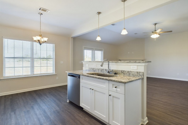 Come home to the Cottonwood, a floor plan built to exude style, quality, and modern comfort. This home has 4 bedrooms and 2 baths in a spacious layout to give you and yours ample room. The concept open living spaces makes living easy and is perfect for entertaining seamlessly. Spend time cozied up in the evenings next to the wood-burning fireplace and creating memories to cherish. The Cottonwood floor plan is designed with a modern kitchen that comes loaded with sleek stainless-steel appliances, perfect for all your culinary adventures and brings a touch of sophistication to anything you host. This floor plan also brings a touch of luxury to the owner’s suite which features a spacious walk-in closet and a private bathroom with a relaxing soaking tub and his-and-hers sinks, to help you feel like you’re in your own private oasis. Of course, the Cottonwood floor plan is designed for your comfort, but it’s also energy efficient, helping you save on utility bills and reducing your environmental footprint. The American dream of homeownership can be yours when your home is the Cottonwood floor plan. Features include: 10′ Ceiling in Family Room | Wood Burning Fireplace | Large Kitchen Island with Breakfast Bar | Dining Area & Breakfast Nook | Ceiling Fans in Master & Great Room | Separate Garden Tub & Shower in Master Bath | Double Vanities in Master | Large Walk-in Closets| Raised Vanities | Hard Tile in Foyer, Fireplace & Bath | Attic Access from Inside Hall & Garage | Centrally Wired Command Center | Garage Door Openers | Spray Foam Insulation in All Exterior Walls & Roof Line | Energy Saving Heat Pump Hot Water Heater
