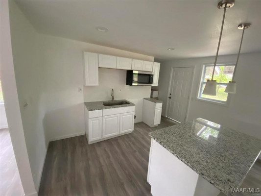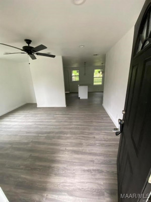 Beautiful renovated 3 bedroom and 1 bath house has a nice exterior of black and gray with landscaping of black mulch and green shrubs that will blossom out while comfortably living at this home. The interior is equipped with new laminate gray floors throughout. White/gray tile in the bathroom and shower area. This house has stainless steel microwave and electric range in the kitchen with a big island in the middle that will be brighten with cannon lights. Each bedroom has a ceiling fan and spacious closet. The laundry room has washer/dryer connections for stackable machines. The backyard is very large to enjoy summer parties and family. AC/heat unit replaced October 2024 and plumbing done December 2022. Give me a call and let’s make it your new home or investment property. Property sold as is.