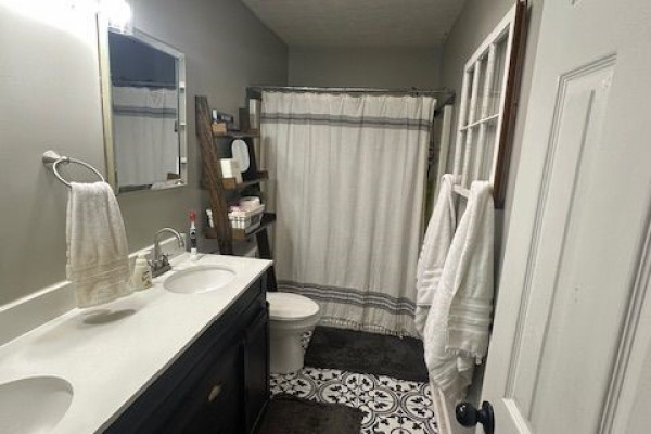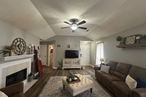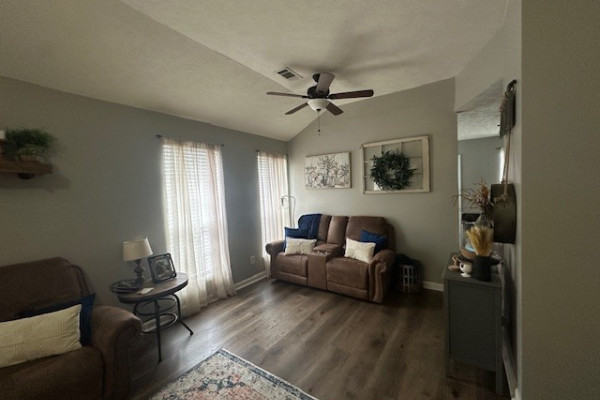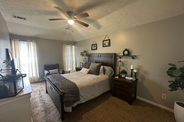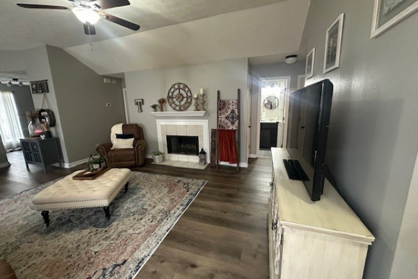 LVP flooring in living room, kitchen, and master; tile in bathrooms; carpet in the other 2 bedrooms