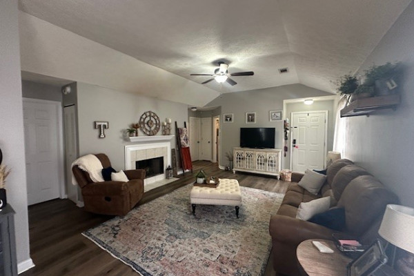 Bright living room with decorative fireplace (fireplace is not to be used)