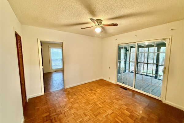 This home features fresh exterior paint and a spacious family room with a cozy fireplace. Two well-sized bedrooms share a guest bath, and the large den—currently used as a primary suite—offers double doors leading out to the screened porch, creating a perfect spot for morning coffee or evening relaxation.