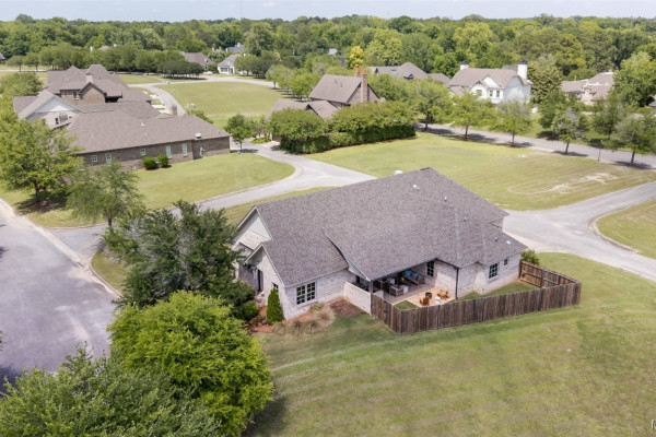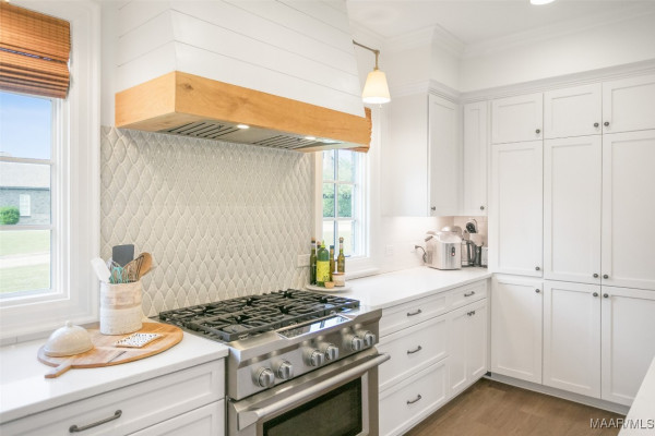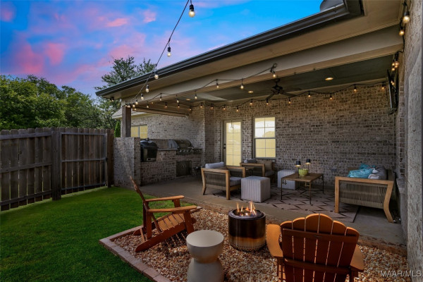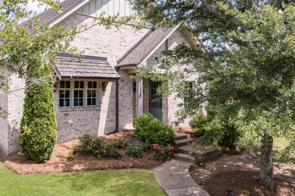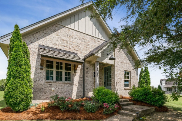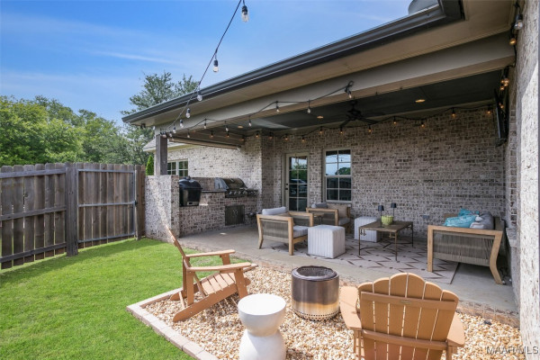 Additional highlights include a large laundry room with space for baskets and hanging, custom bamboo shades on every window, and a charming front nook ideal for a Christmas tree, game table, or extra seating. The covered back porch makes outdoor entertaining a breeze, complete with a built-in outdoor kitchen perfect for hosting. A two-car garage includes an additional space ideal for a golf cart.