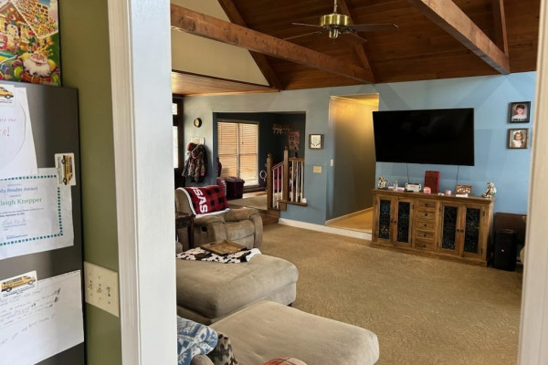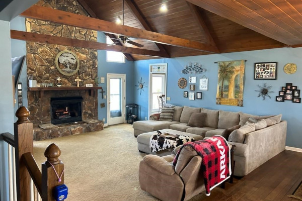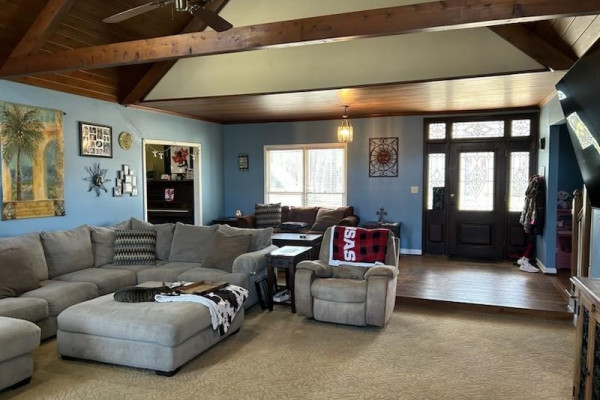 If you’re looking for a country setting lots of space inside and out, she’s the one! This is a beautiful roomy country home on 7+/- acres. The vaulted ceiling with exposed wooden beams and stone fireplace in the family room are spectacular! There are beautiful wood floors in the huge foyer. Theres a sunroom which can be used for several different needs boasting tons of wonderful light. The garage has stairs that lead up to a huge floored bonus area. There are four decks on the back of the house, and a covered porch across the front. A bonus room is off of the deck with big beautiful windows, and is now being used as an office. This is a beautiful home that must be seen to appreciate its many amenities.