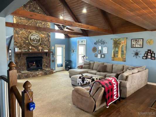 If you’re looking for a country setting lots of space inside and out, she’s the one! This is a beautiful roomy country home on 7+/- acres. The vaulted ceiling with exposed wooden beams and stone fireplace in the family room are spectacular! There are beautiful wood floors in the huge foyer. Theres a sunroom which can be used for several different needs boasting tons of wonderful light. The garage has stairs that lead up to a huge floored bonus area. There are four decks on the back of the house, and a covered porch across the front. A bonus room is off of the deck with big beautiful windows, and is now being used as an office. This is a beautiful home that must be seen to appreciate its many amenities.