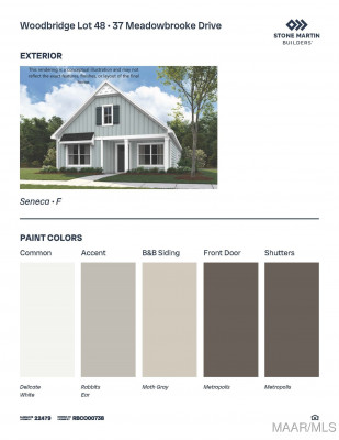 Looking for a BEAUTIFUL , NEW, STONE MARTIN BUILDERS community to live just minutes from CHARMING downtown Wetumpka and the LOVELY, Lake Jordan? Special incentives available! Please ask for details. Experience the charm of the Seneca cottage, beginning with its welcoming covered front porch. Inside, vaulted ceilings in the great room create an open, airy feel perfect for relaxing or entertaining. The kitchen features granite countertops on a peninsula bar and generous cabinet space, ideal for daily use and gatherings. A private retreat at the rear of the home includes a thoughtfully designed en-suite bath for added comfort. Step outside to a covered porch that extends your living space outdoors, providing the perfect spot to unwind with friends or neighbors.