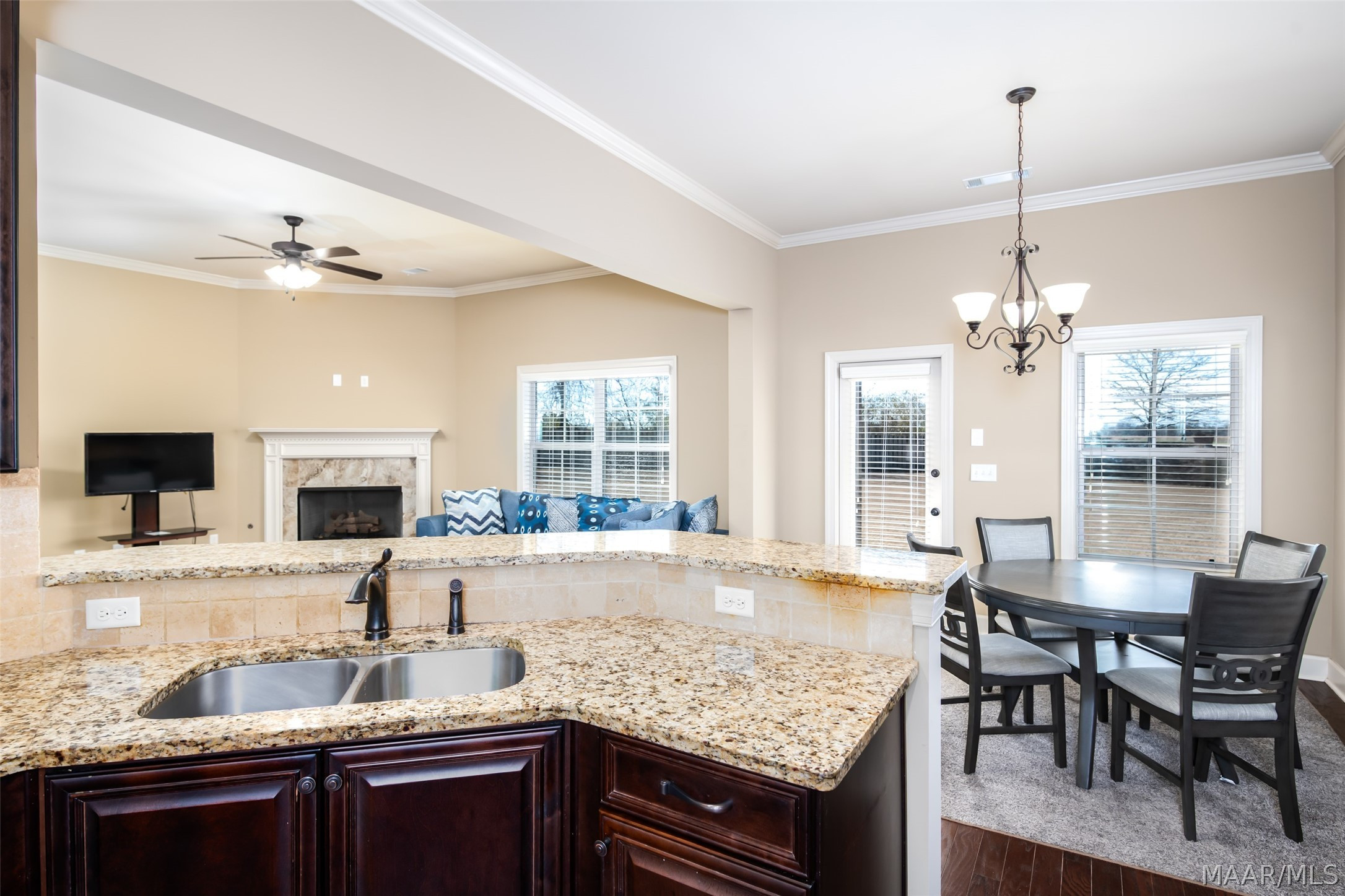 Located in the private section behind the brick wall of “The Oaks” and close to the neighborhood pond! This remarkable 2 story sits on a large cul de sac lot. Owners’ Suite is down, 4 bedrooms up. Enter in to a large Foyer with Living room/office and Dining on either side. Wood floors, granite tops, and decorative tile. New stove and microwave, and the ‘fridge remains as well. Breakfast bar looks over the large Great room with gas log fireplace and views of the back yard. 1/2 bath for guests. Owners’ Suite can easily hold large furniture and has TWO walk-in closets: one is 6.5×12 and the other is 4.5×6.5! Laundry has folding counter and a large utility closet. Upstairs, brand new carpet has been installed. 4 bedrooms are perfectly situated around the loft. One hall bath and a “Jack n Jill’ between 2 bedrooms. Covered back porch and a HUGE back yard gives multiple opportunities for outdoor creation! 2 car garage also has the “Harley room” for storage or work area, accessed by single garage door on the side. Enjoy ALL Sturbridge has to offer! 8 acre park with Clubhouse, 2 fitness centers, large pool area, tennis courts and an Athletic Field. Pathways meander through and around the park. Super close to 3 Grocery stores and multiple shopping places, including East Chase mall. 2 hospitals and quite a few Doctor’s offices close by as well!