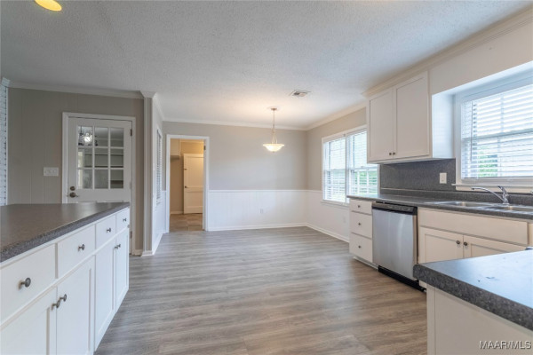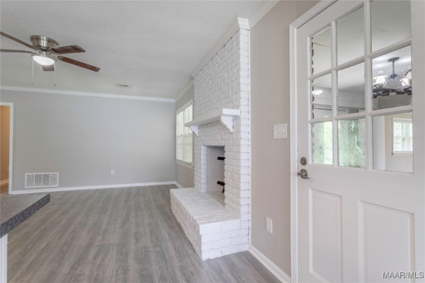 MOVE IN READY!!!! NEW FLOORING, FRESH PAINT, NEW EVERYTHING. This beautifully UPDATED home features 4 beds and 2 baths, sitting on a large lot and offering modern comforts and classic charm. Every detail has been thoughtfully renovated, including a brand-new kitchen with new countertops, disposal, and new dishwasher. The bathrooms are designed with luxury in mind, boasting elegant tilework and contemporary fixtures. Enjoy the versatility of multiple living spaces, including a cozy living room, formal dining room, and a warm den with a fireplace—perfect for relaxing evenings and providing a peaceful retreat year-round. The large 18ftx18.5ft recreation room not included in the square footage is ideal for a man cave, hobby space, or even another bedroom and has a NEW air conditioning window unit. The laundry room offers lots of storage space. There is additional 13ft x 11ft room not included in the square footage that can be used as an office or sitting area. Outside, you’ll find a spacious fenced backyard with a covered patio that offers privacy and room to roam, with a large storage building. The wide driveway flows into the backyard for convenient parking. LAST BUT NOT LEAST YOU DONT WORRY ABOUT A LOT OF THROUGH TRAFFIC BECAUSE THIS STREET DEAD ENDS.