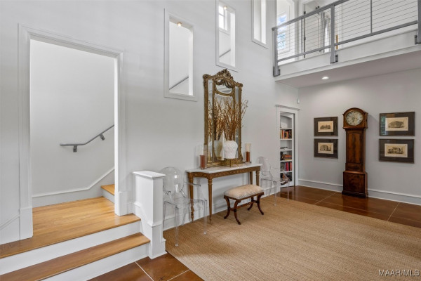 Located in the private, gated community of Lockwood, this beautifully updated home offers stunning design elements and luxurious upgrades throughout. Enjoy a waterfront view and a prime location just steps from the community’s private amenities. Originally designed as an architect’s personal home, this one-of-a-kind property is filled with thoughtful, high-end details. A dramatic 35-foot vaulted ceiling in the living room sets the tone, with a catwalk above and custom iron double doors flanking the fireplace—an impressive $30K feature. Wrought iron railings accent the upper balcony, and custom gas lanterns frame the front entry. The kitchen has been refreshed with painted cabinetry, a new backsplash, and brand-new double ovens (2025). The primary suite offers floor-to-ceiling custom cabinetry and a beautifully updated bathroom with new cabinetry, tile, glass shower enclosure, sconces, and fully outfitted walk-in closets. Upstairs features new carpet and updated lighting. Outdoor living is just as impressive with a screened-in patio for relaxing and a detached workshop for hobbies, storage, or creative space. Additional highlights include a safe bolted to the floor in the living room closet, a freshly painted exterior (2023), two new AC units (2020/2021). This home blends architectural elegance with modern updates in one of Montgomery’s most desirable communities.