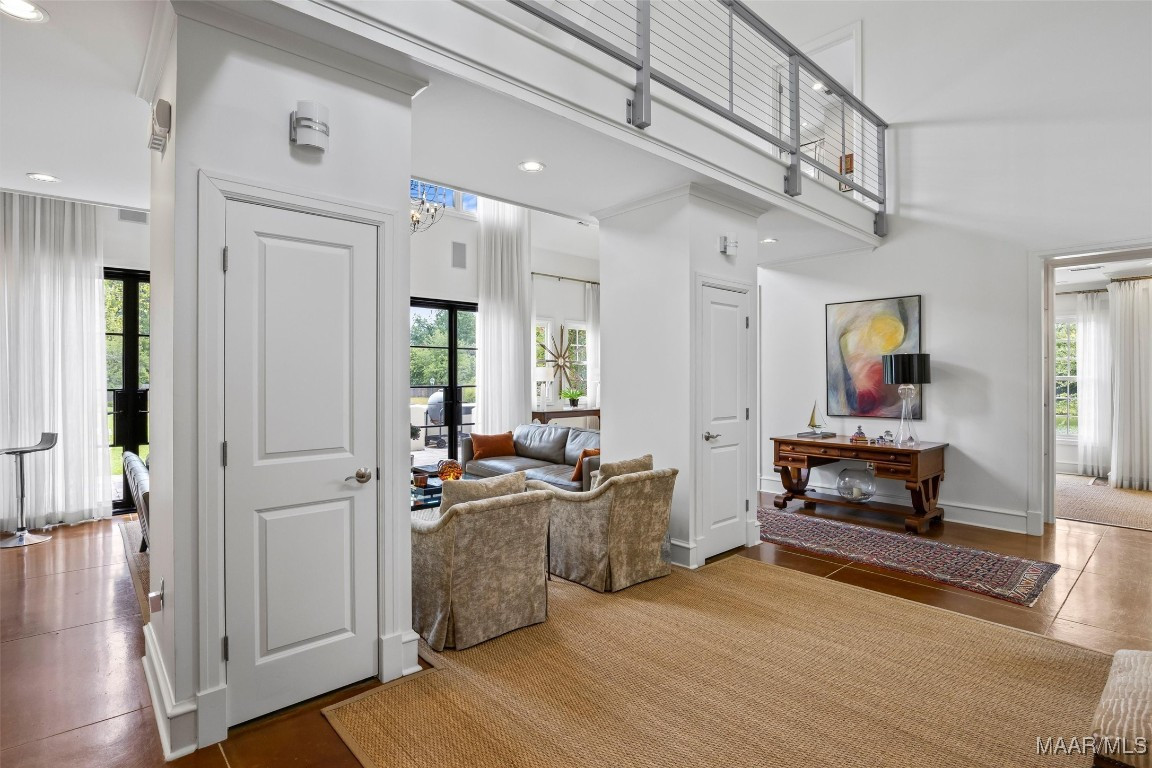 Located in the private, gated community of Lockwood, this beautifully updated home offers stunning design elements and luxurious upgrades throughout. Enjoy a waterfront view and a prime location just steps from the community’s private amenities. Originally designed as an architect’s personal home, this one-of-a-kind property is filled with thoughtful, high-end details. A dramatic 35-foot vaulted ceiling in the living room sets the tone, with a catwalk above and custom iron double doors flanking the fireplace—an impressive $30K feature. Wrought iron railings accent the upper balcony, and custom gas lanterns frame the front entry. The kitchen has been refreshed with painted cabinetry, a new backsplash, and brand-new double ovens (2025). The primary suite offers floor-to-ceiling custom cabinetry and a beautifully updated bathroom with new cabinetry, tile, glass shower enclosure, sconces, and fully outfitted walk-in closets. Upstairs features new carpet and updated lighting. Outdoor living is just as impressive with a screened-in patio for relaxing and a detached workshop for hobbies, storage, or creative space. Additional highlights include a safe bolted to the floor in the living room closet, a freshly painted exterior (2023), two new AC units (2020/2021). This home blends architectural elegance with modern updates in one of Montgomery’s most desirable communities.