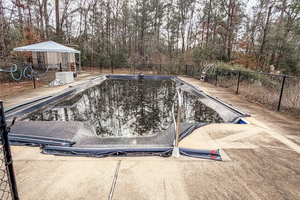 Step outside to enjoy the fenced in-ground saltwater pool and covered patio, perfect for summer gatherings and relaxing weekends. The expansive 4-acre yard offers privacy and room to roam, all in a peaceful setting.