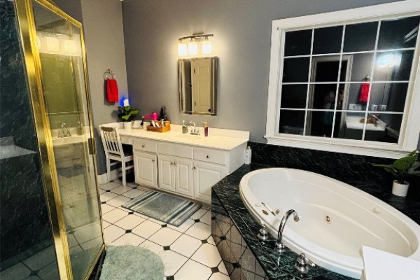 Master Suite Bliss: A luxurious master suite with a gas fireplace, private seating area, and spa-like bath featuring dual vanities, a garden tub, and a separate shower. Your own personal retreat!