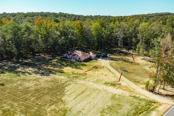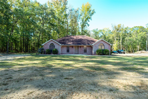 Welcome to this charming country home nestled on 5.820 acres of serene, picturesque land, just 3 miles from the heart of Wetumpka. This spacious 4-bedroom, 2.5-bathroom home offers 2,104 sq ft of living space with fresh interior paint and new recessed LED lights. Enjoy the beauty of vinyl plank floors in all main areas and bedrooms—no carpet here! The family room features soaring vaulted ceilings and a cozy wood-burning fireplace, perfect for relaxing on cooler evenings. The kitchen offers granite countertops, a tiled backsplash, newer dishwasher and double oven range(2021), a breakfast bar overlooking the family room, and ample cabinet space. A breakfast area off the kitchen provides the perfect spot for meals. The laundry room is conveniently located just off the kitchen along with the 1/2 bath. The primary bath has a double vanity, granite countertops, vessel sinks, a jetted tub, and a tiled shower. One secondary bedroom is next to the primary-perfect for an office, nursery, or toddler room. The other 2 secondary bedrooms are generously sized and share a hall bath with a double vanity, vessel bowl sinks, and a tiled walk-in shower. A front room offers great flexibility as a playroom, living room, office, or whatever suits your needs. Step outside to the back deck and explore the vast acreage, which includes a creek, wooded areas for peaceful walks, and mature blackberry, raspberry, and asparagus plants. With opportunities for wildlife watching, practicing shooting, bow hunting, or simply enjoying the outdoors, this property offers endless possibilities to include allowing horses. A double car garage provides covered parking. Electric available to both out building and one has a separate meter. Well added to property 2 years (+/-) with 1.5 hp motor and is 260 ft. deep. Enjoy peaceful country living with the convenience of being just minutes from Wetumpka!