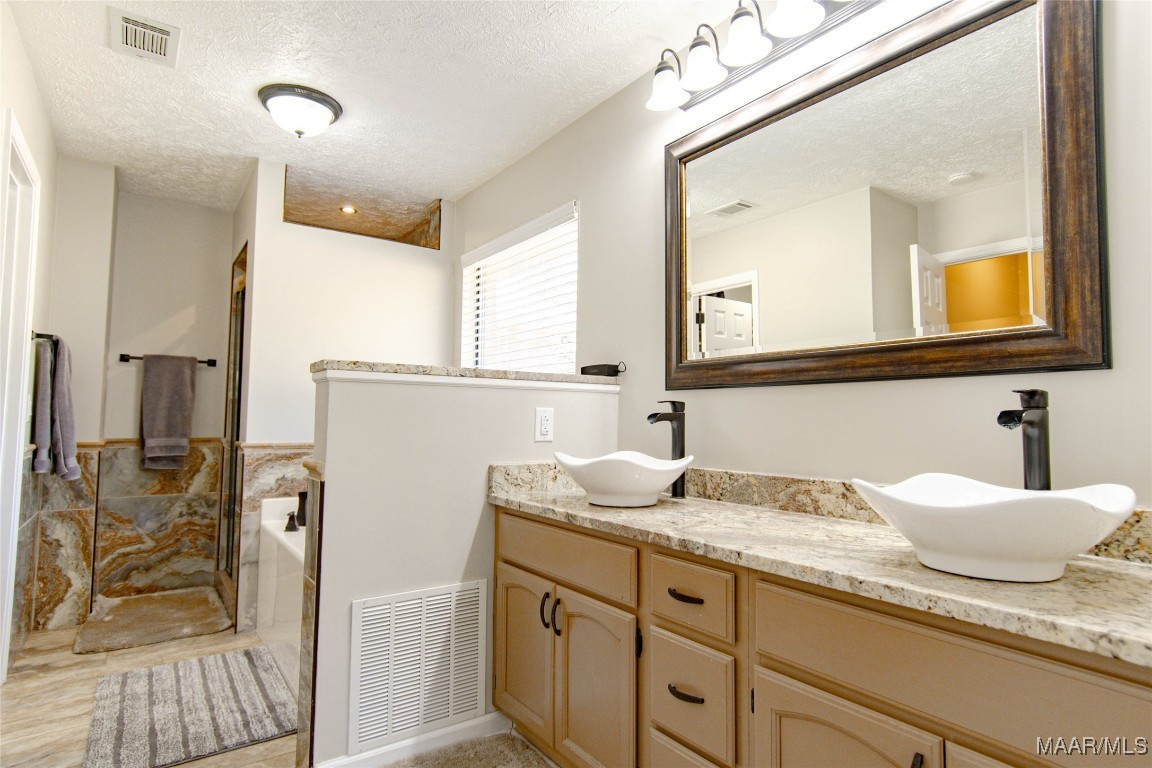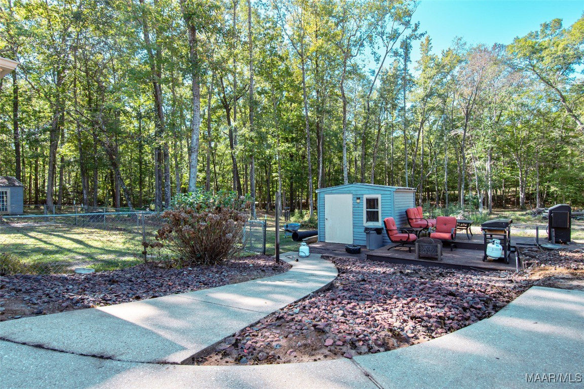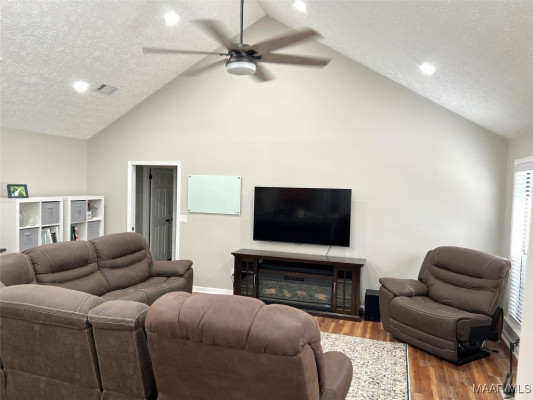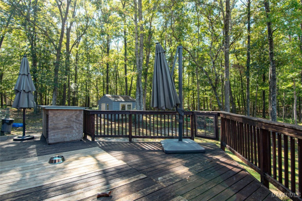 Welcome to this charming country home nestled on 5.820 acres of serene, picturesque land, just 3 miles from the heart of Wetumpka. This spacious 4-bedroom, 2.5-bathroom home offers 2,104 sq ft of living space with fresh interior paint and new recessed LED lights. Enjoy the beauty of vinyl plank floors in all main areas and bedrooms—no carpet here! The family room features soaring vaulted ceilings and a cozy wood-burning fireplace, perfect for relaxing on cooler evenings. The kitchen offers granite countertops, a tiled backsplash, newer dishwasher and double oven range(2021), a breakfast bar overlooking the family room, and ample cabinet space. A breakfast area off the kitchen provides the perfect spot for meals. The laundry room is conveniently located just off the kitchen along with the 1/2 bath. The primary bath has a double vanity, granite countertops, vessel sinks, a jetted tub, and a tiled shower. One secondary bedroom is next to the primary-perfect for an office, nursery, or toddler room. The other 2 secondary bedrooms are generously sized and share a hall bath with a double vanity, vessel bowl sinks, and a tiled walk-in shower. A front room offers great flexibility as a playroom, living room, office, or whatever suits your needs. Step outside to the back deck and explore the vast acreage, which includes a creek, wooded areas for peaceful walks, and mature blackberry, raspberry, and asparagus plants. With opportunities for wildlife watching, practicing shooting, bow hunting, or simply enjoying the outdoors, this property offers endless possibilities to include allowing horses. A double car garage provides covered parking. Electric available to both out building and one has a separate meter. Well added to property 2 years (+/-) with 1.5 hp motor and is 260 ft. deep. Enjoy peaceful country living with the convenience of being just minutes from Wetumpka!