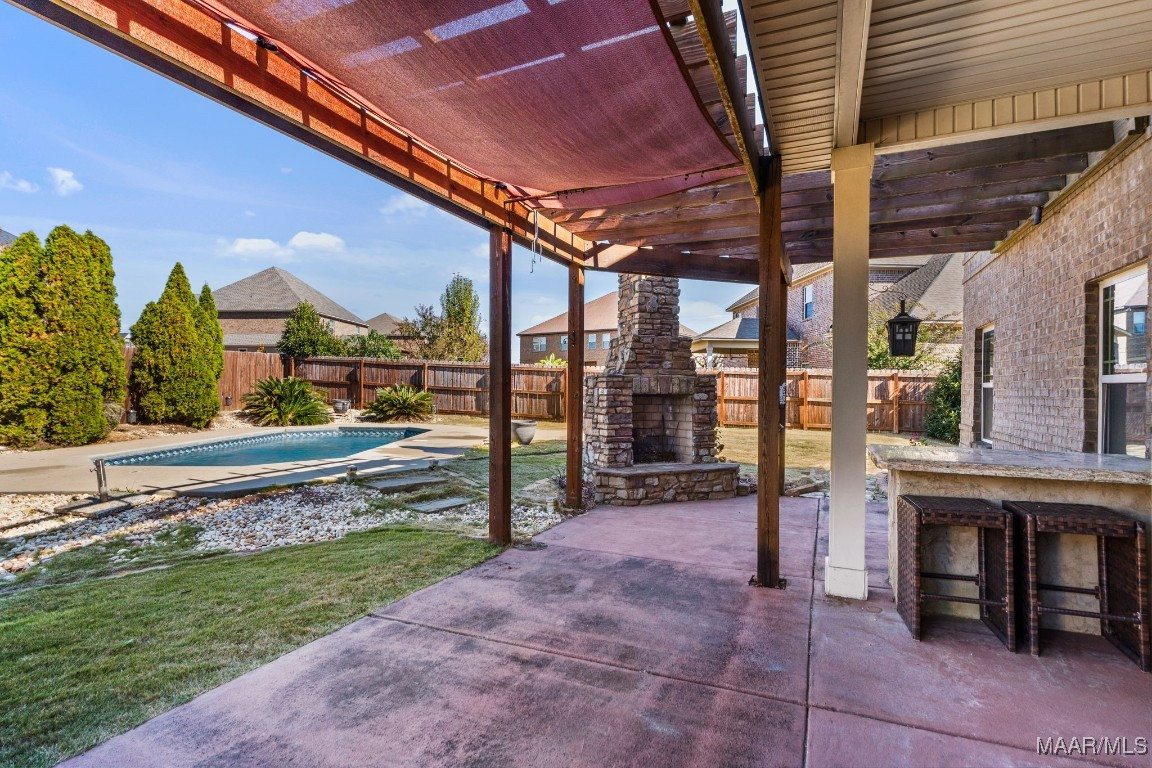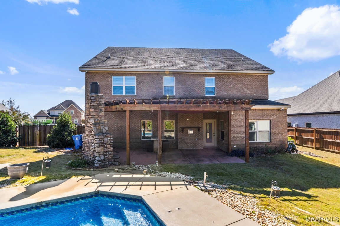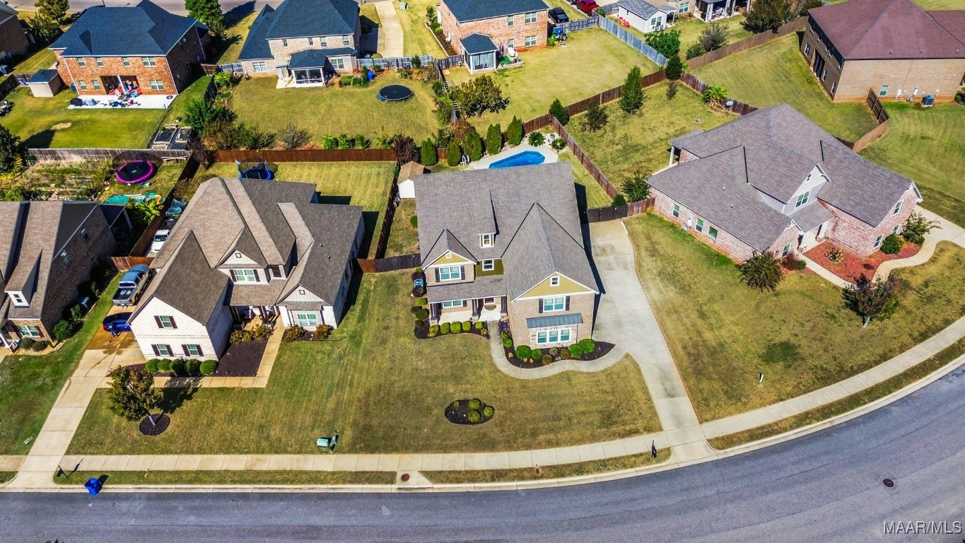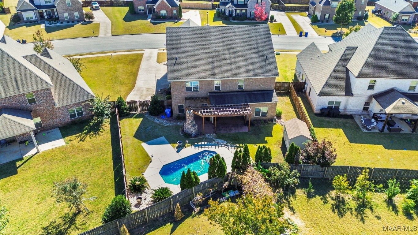 Entertain in style where space feels endless with the kitchen open to the dining room, living room and eat in kitchen that continues to flow onto the covered patio with an outdoor fireplace making the space cozy next to your personal pool year round. There is an office/den on the main level that can be afforded privacy by closing the designer french doors. The large primary suite is located on the main level that has a soaking tub, large tile shower, separate vanities and huge walk in closet. Upstairs you will find 5 generous sized bedroom and 2 full bathrooms.This home also has a 3 car garage and large parking pad. You may also enjoy the 3 community pools, splash pad, playground, walking track, lake and common areas of this wonderful community.