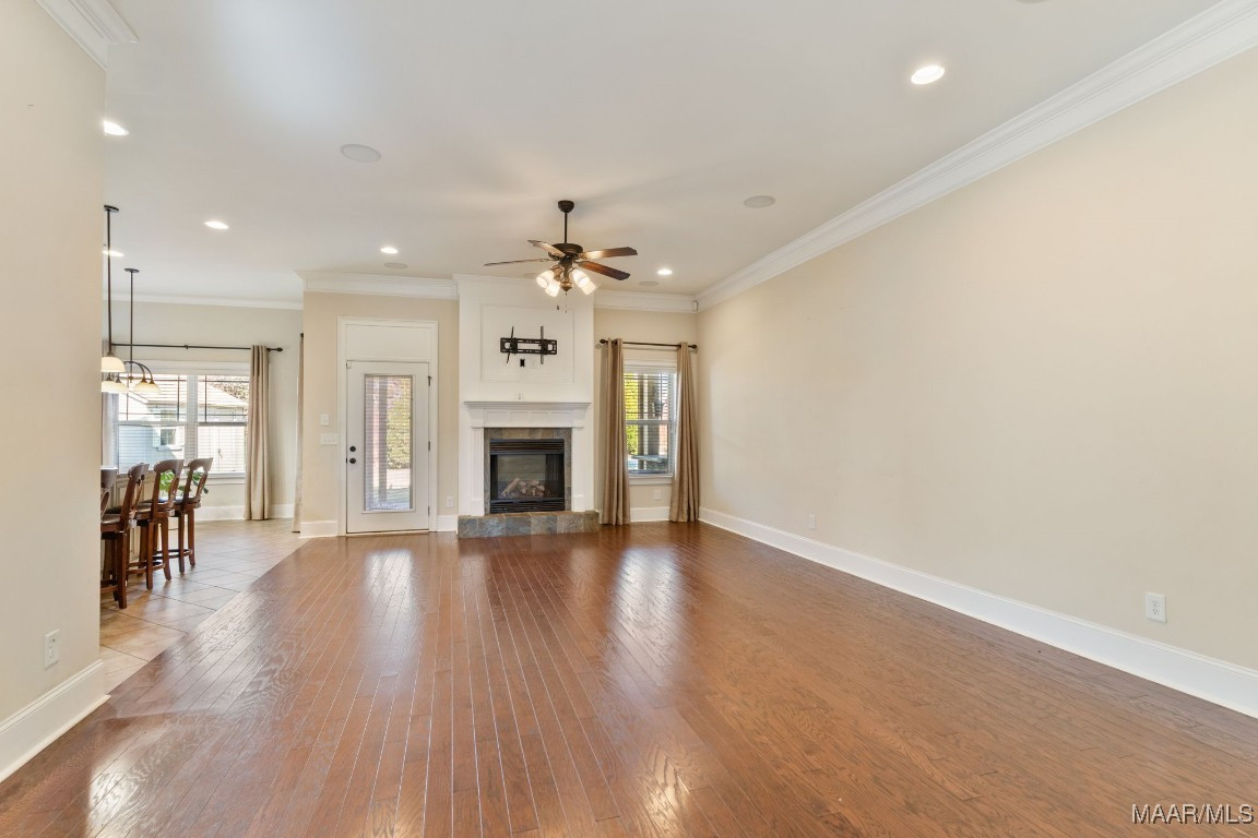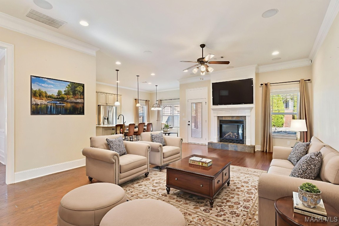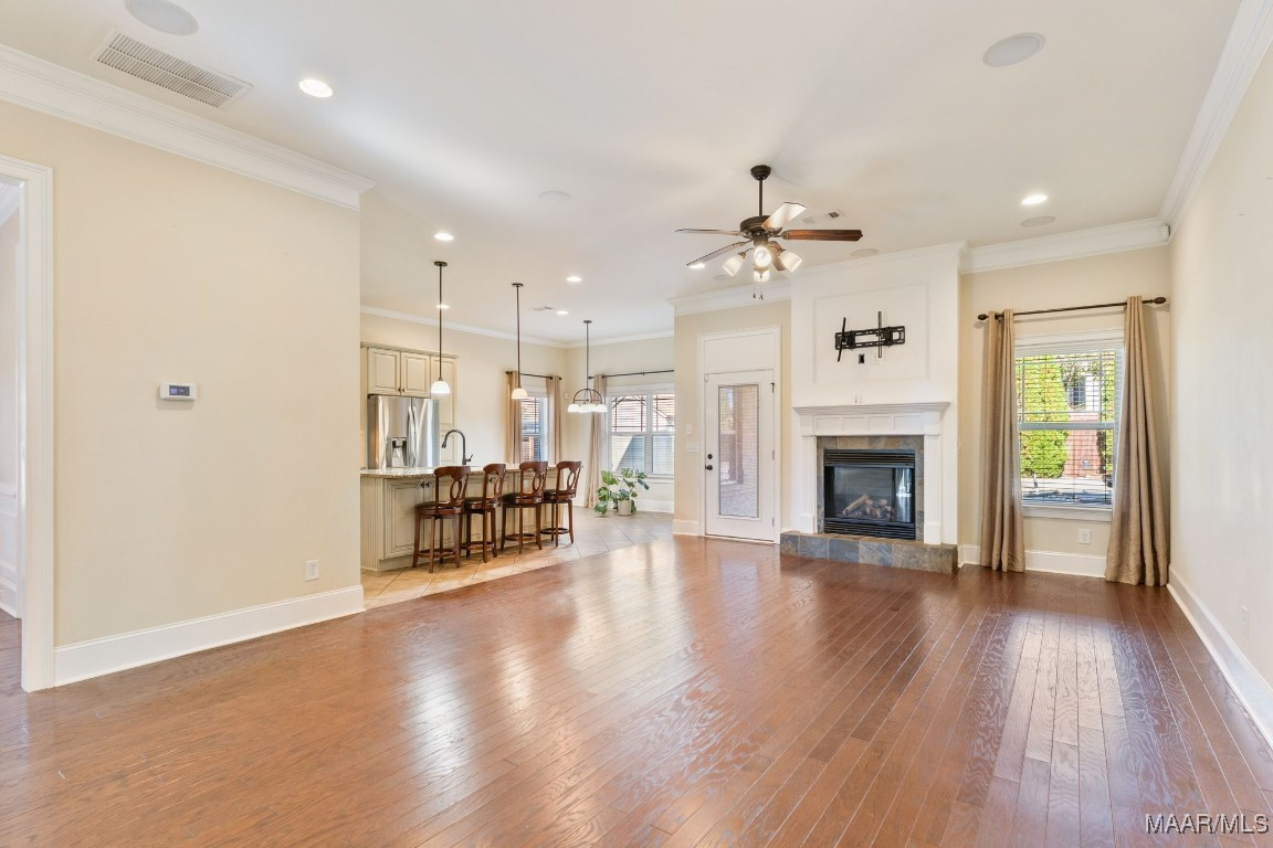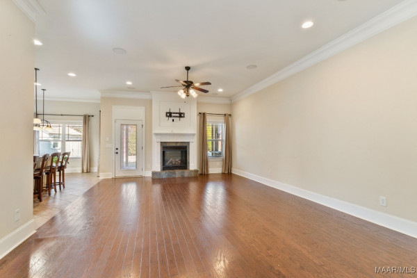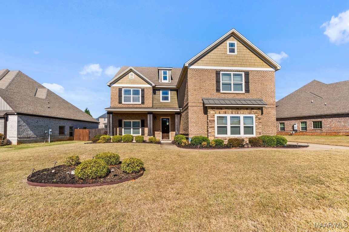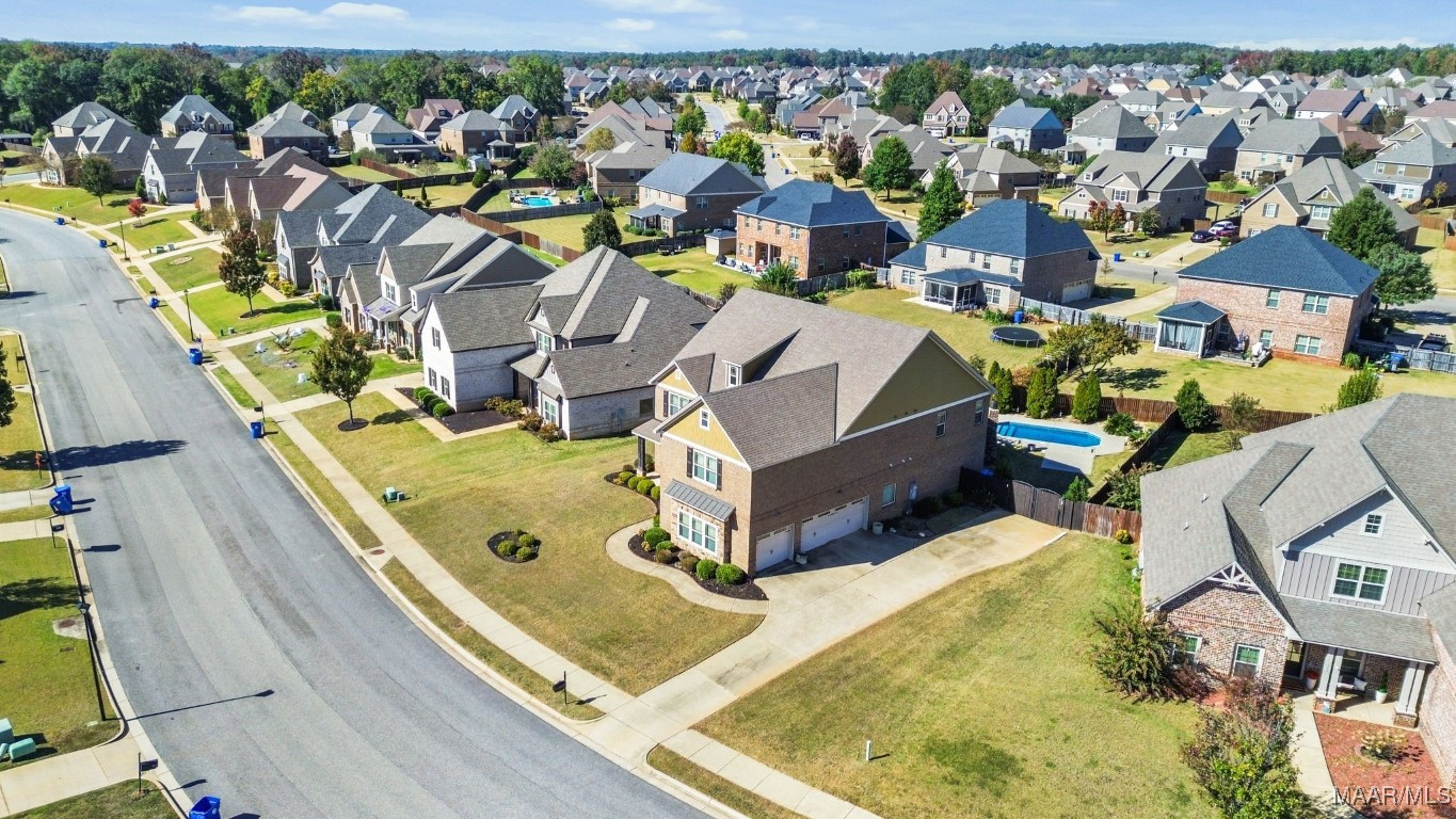 Entertain in style where space feels endless with the kitchen open to the dining room, living room and eat in kitchen that continues to flow onto the covered patio with an outdoor fireplace making the space cozy next to your personal pool year round. There is an office/den on the main level that can be afforded privacy by closing the designer french doors. The large primary suite is located on the main level that has a soaking tub, large tile shower, separate vanities and huge walk in closet. Upstairs you will find 5 generous sized bedroom and 2 full bathrooms.This home also has a 3 car garage and large parking pad. You may also enjoy the 3 community pools, splash pad, playground, walking track, lake and common areas of this wonderful community.