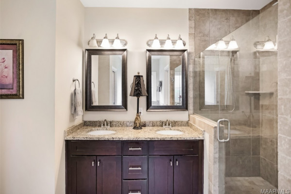 The main level primary suite is a true retreat, complete with a luxurious ensuite bath featuring a soaking tub, separate shower and dual vanities. Upstairs, you’ll find generously sized secondary bedrooms and a flexible bonus area ideal for a playroom, office, or media space.