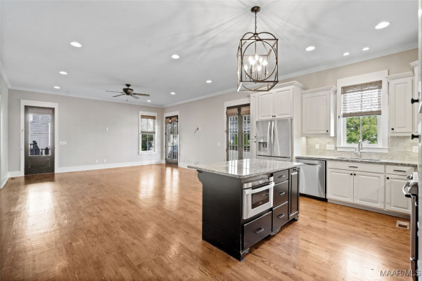The answer to your lake living dreams! Make your move to this gorgeous four bedroom, three bath custom home with its sparkling lake views, generous porches, and thoughtful touches throughout. Two bedrooms and two baths on the first level offer convenience and flexibility. The second bedroom can serve as a fantastic study or guest room with views of Crescent Park and Lake Cameron. The 10 foot deep porches – including the screen porch which wraps along the side and rear of the home – offer phenomenal outdoor living opportunities. Upstairs, two enormous suites – one with its own striking park and lake views – share a Jack and Jill bath. A large loft, ALSO with sweeping lake views, and two ENORMOUS closets make for a fabulously practical and comfortable 2nd floor living area! Every room in the house takes advantage of the home’s setting on Crescent Park with it’s open lake views. The formal dining room is ideally set overlooking Crescent Park. Or, take advantage of the open plan with eat-in kitchen and great room wrapped by the 10’ screened porch. The master suite offers a walk through bath with dual custom closets, separate vanities and a generous tiled shower. The two bedrooms upstairs are over-sized with each offering walk-in attic access. Custom built at the end of 2013, the property has been exceptionally well cared for. Oak flooring is used throughout. Refrigerator , washer and dryer convey with the property as well as an electric chair lift that carries you to the 2nd floor. Both HVAC units were replaced in 2024. Outside, the property is fully landscaped and offers a two bay carport with attached storage, a two vehicle parking pad and generous parking along the street adjacent to the home. Vacation at home with 200 acre Lake Cameron just out your door. The Town Square, marina and Lucas Point pool are all less than a block away. Your home offers some of the best view for 4th of July fireworks each year! Zoned for Pike Road schools.