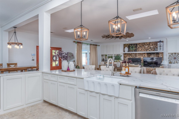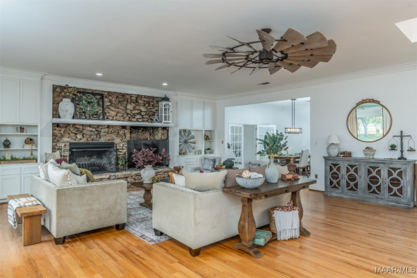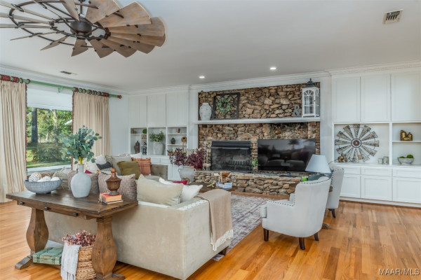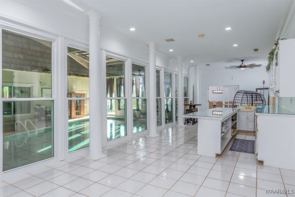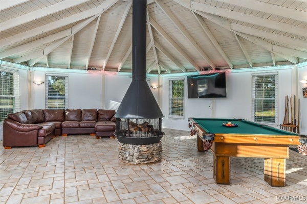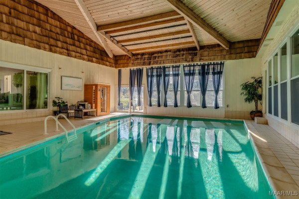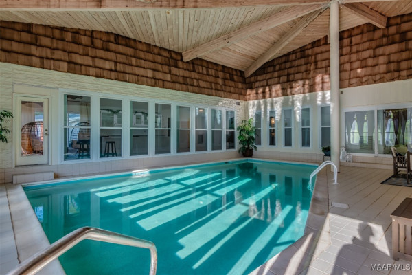 Prepare to be captivated by this renovated luxury oasis nestled on 9 sprawling acres in Montgomery, AL. This unique estate offers over 8,633 square feet of elegance and grandeur, featuring six spacious bedrooms, four full baths, and two half bath. 3900 Snowdoun Chambers Road is a spectacular one-of-a-kind property with all the extras. Upon entering, you will be greeted by an open, flowing floor plan perfect for both intimate gatherings and grand entertainment. Leading to exquisite living spaces adorned with loads of crown molding and designer lighting. The gourmet kitchen is a chef’s dream, equipped with stainless steel appliances, subzero refrigerator, quartz countertops, and custom cabinetry that blends both style and functionality. Adjacent to the kitchen, the spacious family room is a cozy yet elegant retreat, highlighted by a beautiful stone fireplace, beautiful built-ins and a bay window that bring in natural light and stunning views of the outdoor oasis. A casual dining/breakfast nook compliments the kitchen. The banquet size gathering room sits adjacent to the glass wall IN-DOOR heated pool with tons of natural lighting. The 1,300 sq ft pool room is perfect for entertaining. The massive main suite is a true sanctuary boasting a sitting area, fireplace, w/ French doors leading to the 300 sq ft rear deck. It features a luxurious spa-like bathroom with a soaking tub, dual vanities, and a custom walk-in closet. This home features three additional oversized primary suites. Enjoy the spacious game room with a built-in bar, pool table and fireplace, offering endless possibilities for recreation. The 1,400 sq ft two-story barn/workshop is a handyman’s dream with electric garage doors, 5 horse stables each with well water and electricity, an office and garage space that fits 5 cars. TONS of storage space on the second floor. A well for irrigation, stocked pond and a firepit. All of this and more! Schedule a private viewing today and experience true southern living!