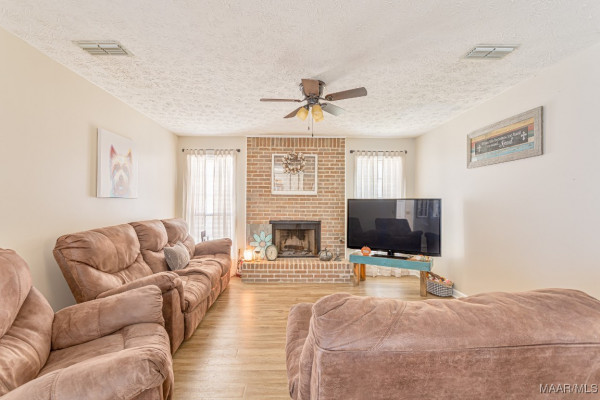 This home checks the boxes! Discover effortless living in The Timbers of Dalraida, where convenience meets comfort in this move-in-ready 2-bedroom, 2-bath home. Enjoy an open-concept layout with a cozy wood-burning fireplace with gas starter — ideal for relaxing nights in. The freshly painted exterior and updated front porch columns add charming curb appeal from the moment you arrive.