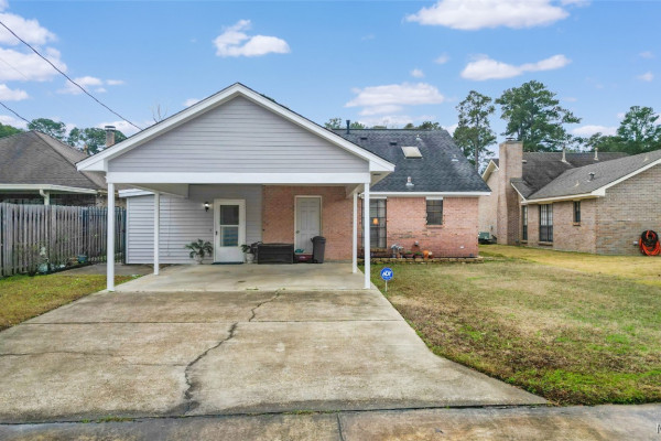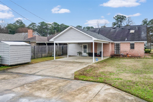 Welcome to this charming 3-bedroom, 2-bath home located in the desirable Timbers neighborhood of Montgomery. This well-designed home offers a spacious living room featuring a cozy fireplace, perfect for relaxing or entertaining. A separate dining room provides an ideal space for gatherings and special meals. The large kitchen offers ample cabinetry and counter space, complete with a sunny breakfast nook for casual dining. A comfortable den with a large window fills the space with natural light, making it perfect for a home office, sitting room, or additional living area. The generously sized master suite features a large bedroom and an ensuite bathroom with his-and-her sinks, a soaking tub, and a separate shower, along with a spacious walk-in closet. The guest bedrooms are nicely sized and share a well-appointed guest bathroom. Additional features include a convenient double carport and a functional layout that offers both comfort and versatility. Located in an established neighborhood close to shopping, dining, and schools, this home is a must-see. Call today to schedule a tour of this remarkable home!