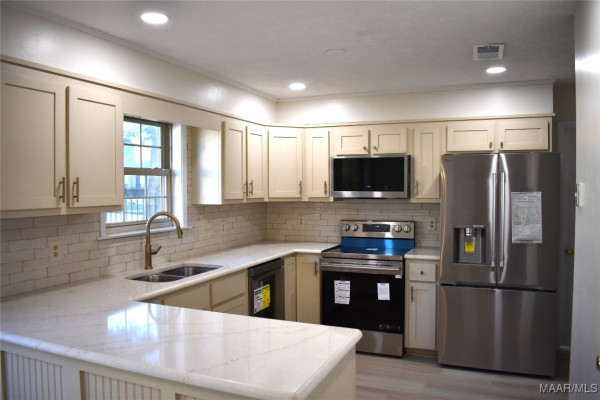 LIKE NEW patio home in The Timbers! This home has just had a total makeover and boy does it shine! new floor, fresh paint, brand new kitchen AND both baths renovated top to bottom! Kitchen features custom cabinets, new appliances, gorgeous Quartz countertops. Great layout/floor plan perfect for entertaining. front room (formerly used as a dining room) could be a den, study, home office, or with a little work, a third bedroom. Out back is a private oasis with swimming pool, mature trees, 2 car carport, and privacy fencing. Come see this gem before someone snatches it up!