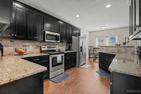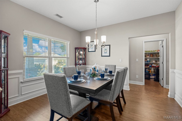 Beautiful two-story home featuring hardwood floors throughout the main level. Step into the spacious living room with a built-in fireplace and open views to the second-floor balcony. The formal dining room boasts elegant shadow-box molding, perfect for entertaining family and friends. The kitchen is equipped with granite countertops, tiled backsplash, stainless-steel appliances, and a large walk-in pantry for ample storage.