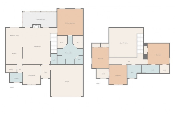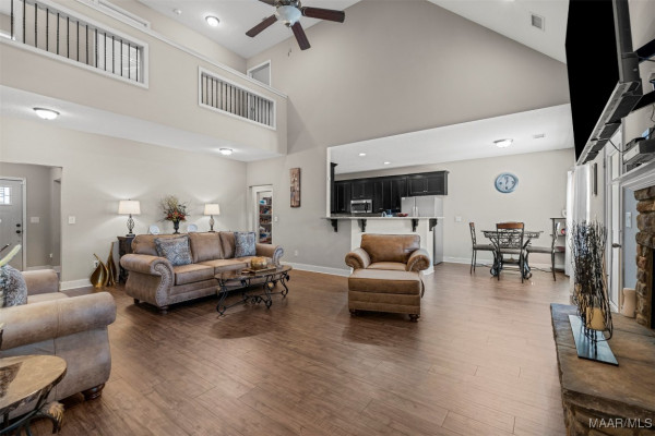 The main-level primary suite offers dual closets, double vanities, a tiled shower, and a luxurious soaking tub. Upstairs, you’ll find three additional bedrooms, including a private mother-in-law suite with its own full bath.