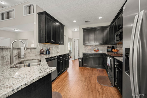 Beautiful two-story home featuring hardwood floors throughout the main level. Step into the spacious living room with a built-in fireplace and open views to the second-floor balcony. The formal dining room boasts elegant shadow-box molding, perfect for entertaining family and friends. The kitchen is equipped with granite countertops, tiled backsplash, stainless-steel appliances, and a large walk-in pantry for ample storage.