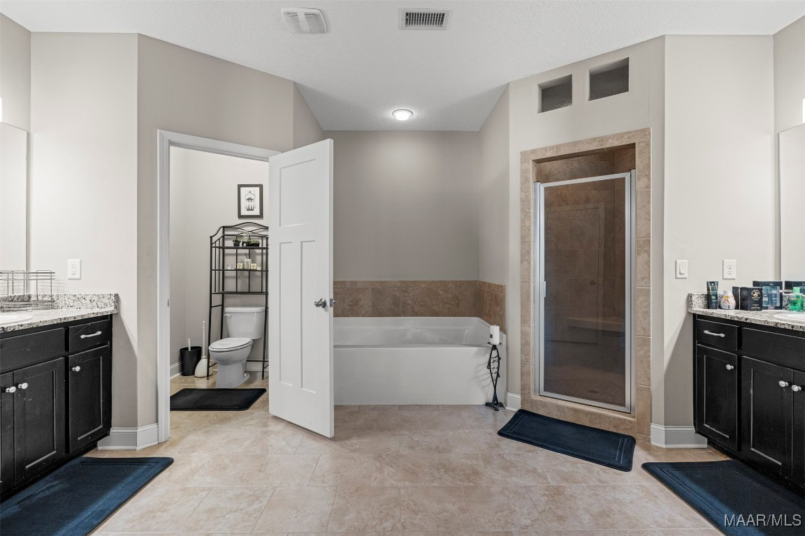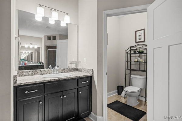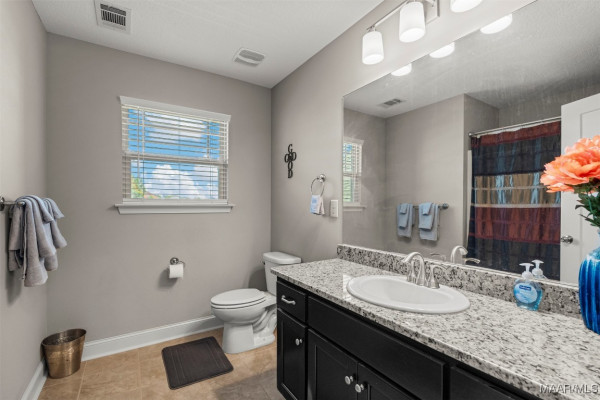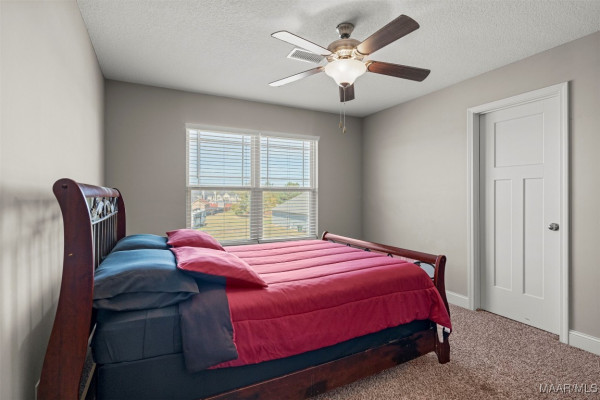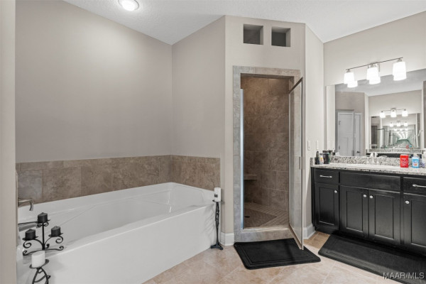 The main-level primary suite offers dual closets, double vanities, a tiled shower, and a luxurious soaking tub. Upstairs, you’ll find three additional bedrooms, including a private mother-in-law suite with its own full bath.