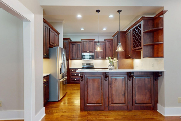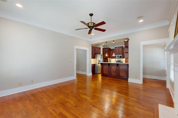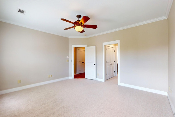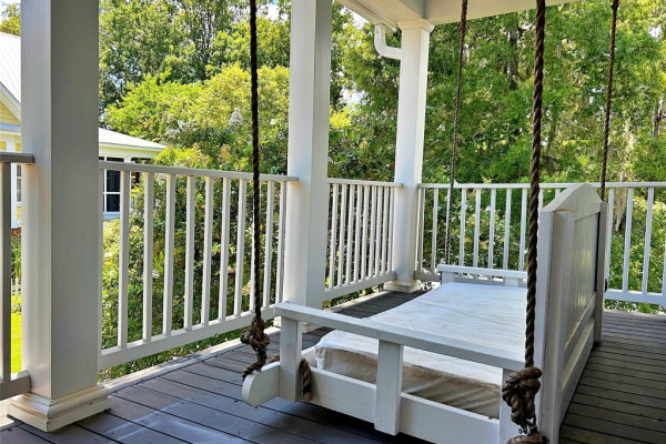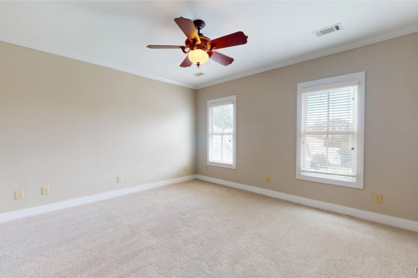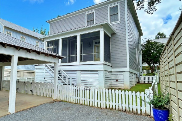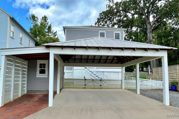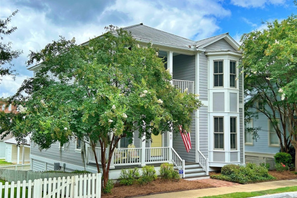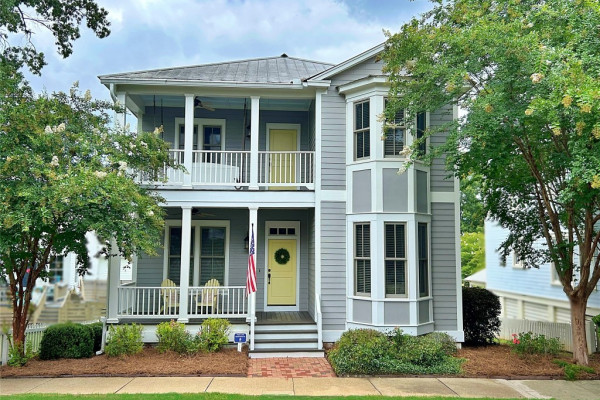 Nestled in the heart of The Waters, where front-porch living, neighborly charm, and resort-style amenities define everyday life, this beautifully crafted two-story home blends timeless Southern architecture with thoughtful updates. A wide, welcoming front porch and an upper-level balcony—both framed by a stunning two-story bay window—set the tone, complemented by a sleek metal roof and manicured landscaping. Step inside to soaring 10’ ceilings, gorgeous wood floors, and a layout designed for both comfort and entertaining. The formal dining room is spacious and the great room flows seamlessly into the kitchen, which features stainless steel appliances, electric range with double oven, Cambria quartz countertops, and ample cabinetry. A convenient half bath and a main-level bedroom with bay window—perfect as a guest room or home office—complete the downstairs. Upstairs, the owner’s suite offers a tranquil retreat with a jacuzzi tub, separate shower, double vanities, and a generous bedroom. Two additional bedrooms and a full bath complete the second floor. The second floor balcony is perfect for those lazy afternoons. Enjoy peaceful mornings or relaxing evenings on the screened back porch. You will enjoy having 3 parking spaces (two covered) with a covered golf cart area too. The carport also has built in storage. Energy-efficient features include foam insulation, a tankless water heater, and one HVAC unit replaced in 2017 the other HVAC a few years ago. A short walk to Lake Cameron and vibrant Town Center, this home is perfectly situated to enjoy all The Waters has to offer—over 200 acres of lakes for fishing and kayaking, two swimming pools (including a zero-entry pool), lighted tennis and pickleball courts, playgrounds, a private beach, and the Trail to Education leading to Pike Road School. Located only 2.5 miles from I-85 & 15 minutes from EastChase, this is more than a home—it’s a lifestyle.