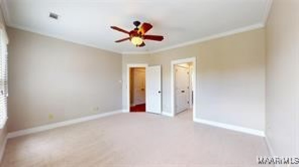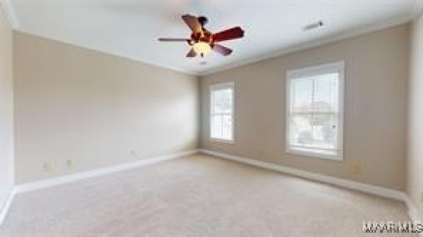 Nestled in the heart of The Waters, where front-porch living, neighborly charm, and resort-style amenities define everyday life, this beautifully crafted two-story home blends timeless Southern architecture with thoughtful updates. A wide, welcoming front porch and an upper-level balcony—both framed by a stunning two-story bay window—set the tone, complemented by a sleek metal roof and manicured landscaping. Step inside to soaring 10’ ceilings, gorgeous wood floors, and a layout designed for both comfort and entertaining. The formal dining room is spacious and the great room flows seamlessly into the kitchen, which features stainless steel appliances, electric range with double oven, Cambria quartz countertops, and ample cabinetry. A convenient half bath and a main-level bedroom with bay window—perfect as a guest room or home office—complete the downstairs. Upstairs, the owner’s suite offers a tranquil retreat with a jacuzzi tub, separate shower, double vanities, and a generous bedroom. Two additional bedrooms and a full bath complete the second floor. The second floor balcony is perfect for those lazy afternoons. Enjoy peaceful mornings or relaxing evenings on the screened back porch. You will enjoy having 3 parking spaces (two covered) with a covered golf cart area too. The carport also has built in storage. Energy-efficient features include foam insulation, a tankless water heater, and one HVAC unit replaced in 2017 the other HVAC a few years ago. A short walk to Lake Cameron and vibrant Town Center, this home is perfectly situated to enjoy all The Waters has to offer—over 200 acres of lakes for fishing and kayaking, two swimming pools (including a zero-entry pool), lighted tennis and pickleball courts, playgrounds, a private beach, and the Trail to Education leading to Pike Road School. Located only 2.5 miles from I-85 & 15 minutes from EastChase, this is more than a home—it’s a lifestyle. Owner pays HOA fees for renter.