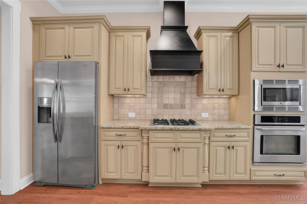 The main level welcomes you with a gracious foyer leading into a beautiful formal dining room highlighted by a coffered ceiling and wainscoting. The large great room offers a cozy fireplace with gas logs and flows seamlessly into the well appointed kitchen, complete with a gas cooktop and decorative range hood, granite countertops, under cabinet lighting, wall oven and microwave, breakfast bar, pantry, and ample cabinet and counter space. A bright breakfast nook overlooks the backyard, creating the perfect spot for casual meals.