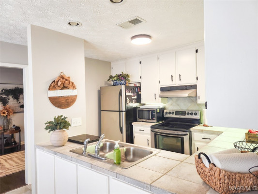 Don’t wait any longer to make your move! This renovated 2 bedroom, 2 bath patio home won’t take long to find its new owner. Inside the front door, you enter into the long foyer. On the right is the first bedroom which has a fan/light fixture, a double door closet and overlooks the front yard. Just behind this is a magnificent full bathroom boasting all the right renovations! Across the hall is the primary suite which includes a spacious bedroom area, walk in closet, updated vanity area and an amazing glass front tiled walk in double shower. On down the hall, the space opens up to the living room and dining areas. On one side is the living room with gas lighter fireplace and built in shelving and cabinetry. On the opposite side is an open area suited for a dining table or space for whatever you like and need. Through the large open doorway is the kitchen area. The tiled counter space wraps around three sides and provides great workspace and plenty of cabinetry. There is an electric oven, built in dishwasher and refrigerator to finish off the space. Across the kitchen island is the breakfast area sitting just inside the bay windows. Behind this is the laundry room which doubles as entry from the attached carport and has space enough for a catch table as well as offering cabinet storage above the washer/dryer area. Outside there is a 2 car carport and an attached storage area. Inside the privacy fence is a large concrete patio area, which can also be accessed from the living room. Don’t wait to see this one – it has everything you have been looking for!