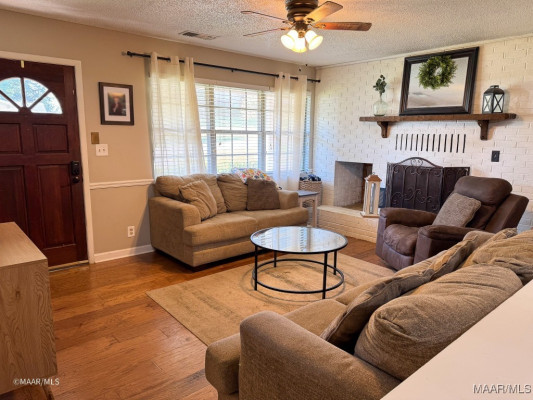 Bask in the warmth of the living room, complete with a charming fireplace and ample natural light.