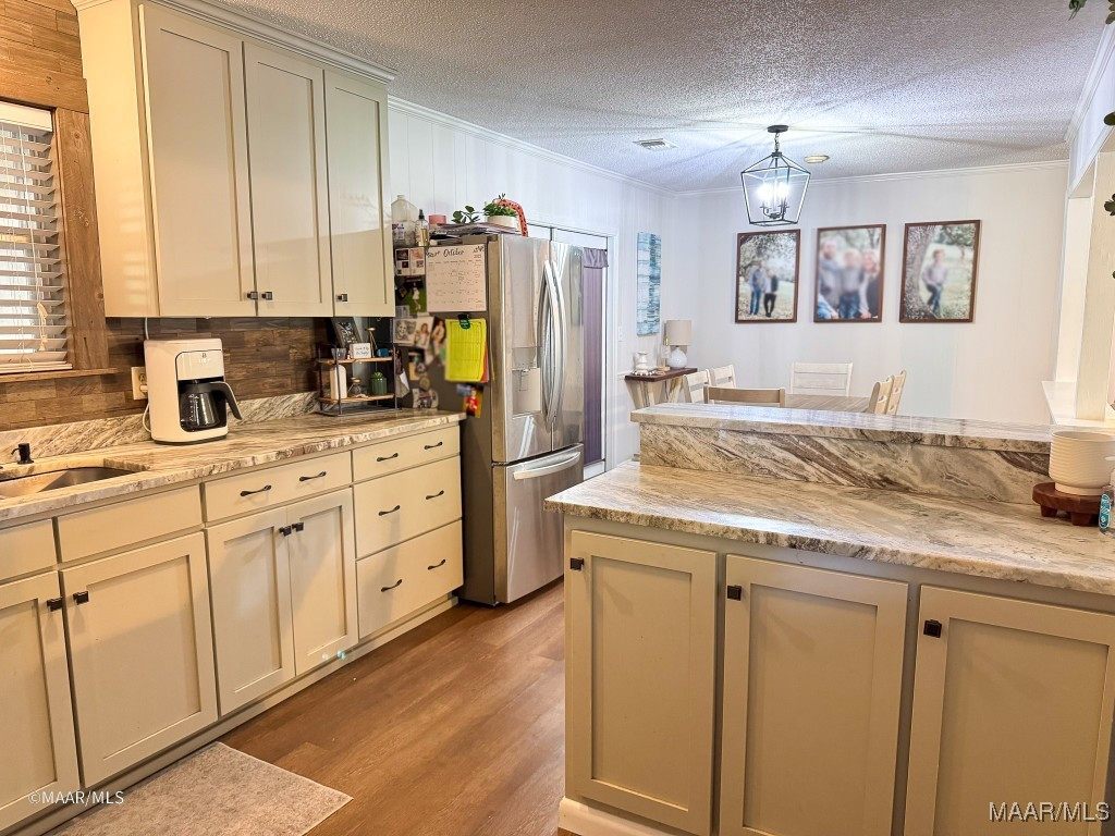 The heart of this home is a stunning kitchen, where granite countertops and sleek cabinetry inspire culinary creativity. Kitchen is open to the Dining and Living room.