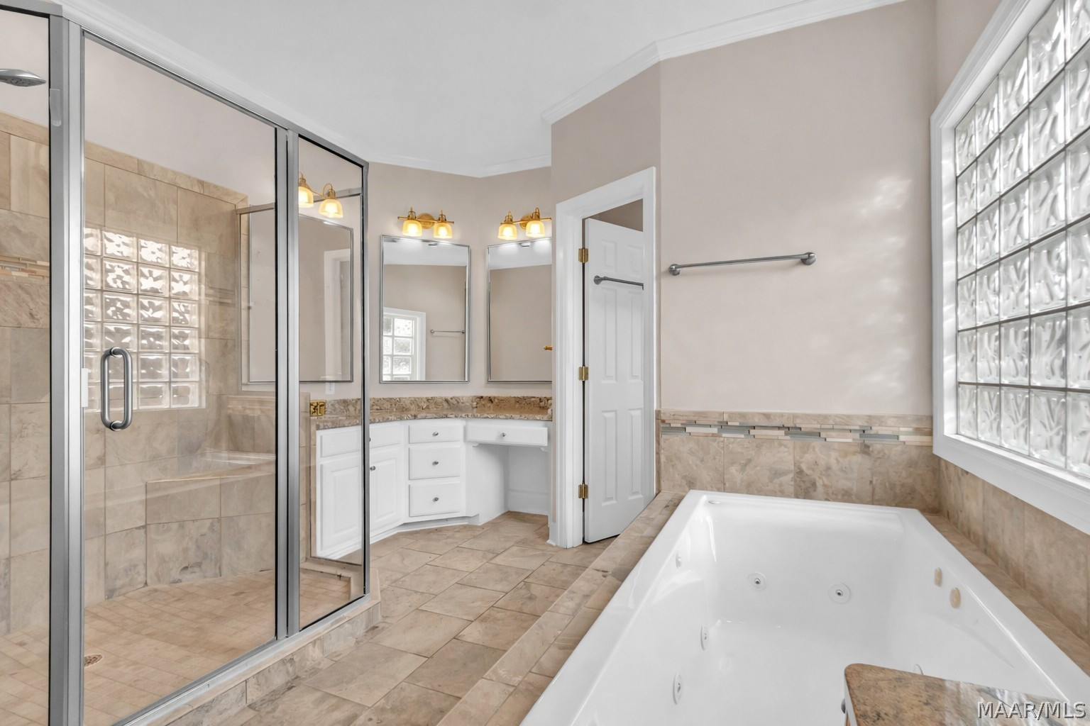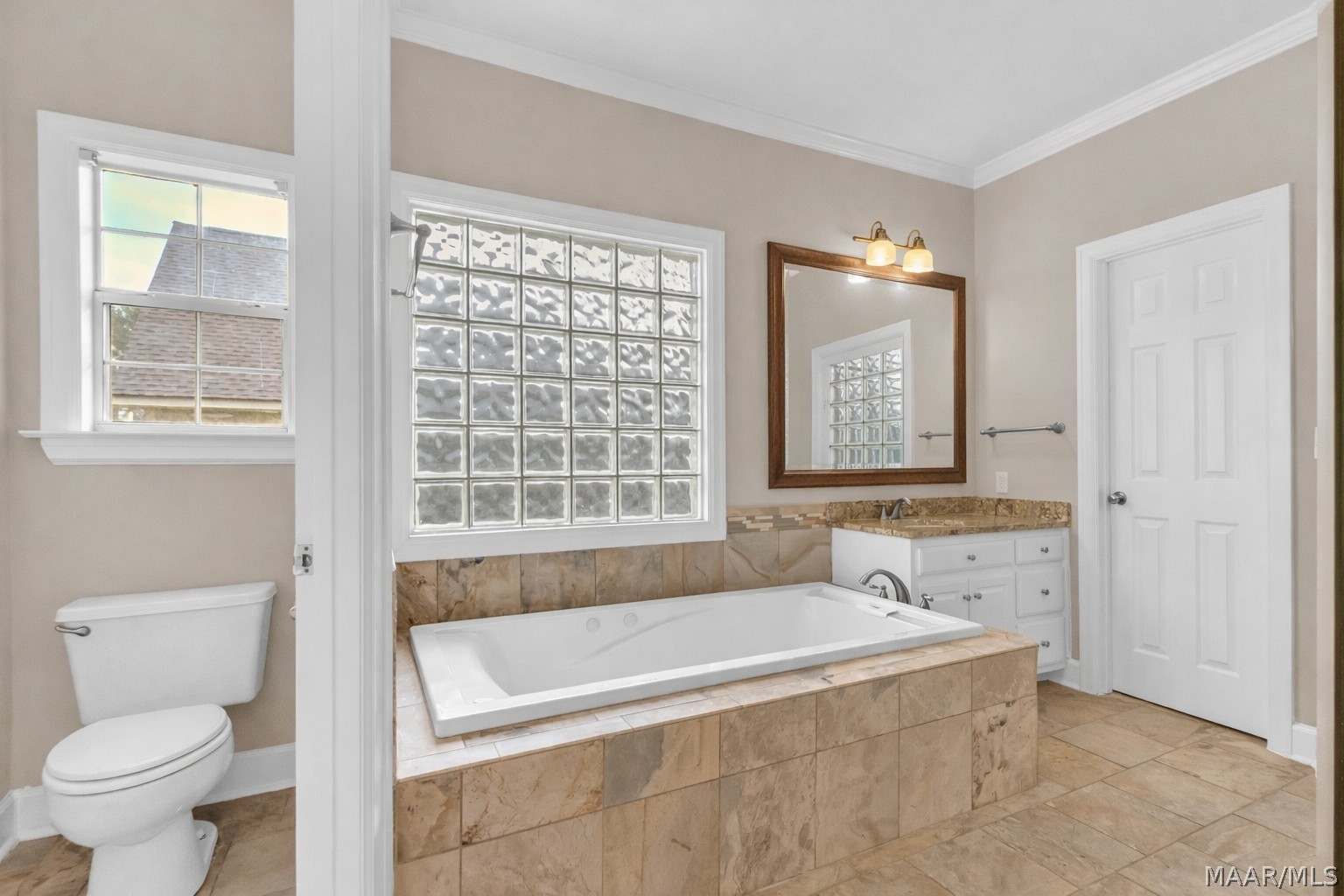 The kitchen is designed for both everyday living and entertaining, featuring honed granite countertops, stainless steel appliances, a generous breakfast bar, and an eat-in area overlooking the backyard. The spacious master suite stands out with triple tray ceilings, private access to the rear deck, and an updated en-suite bath complete with a soaking jacuzzi tub, separate glass shower, updated tile, granite countertops, under-mount sinks, and upgraded plumbing and lighting fixtures, new water heater just installed.