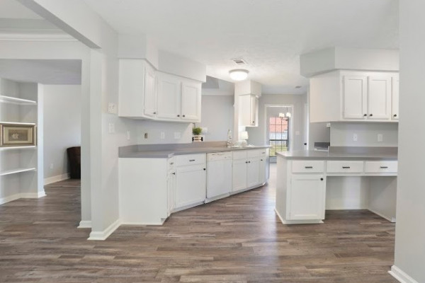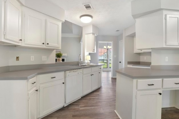 You’ll love the beautiful architectural columns that frame the dining space, the abundant cabinet storage, and the spacious pantry area—ideal for keeping everything organized and within reach.
