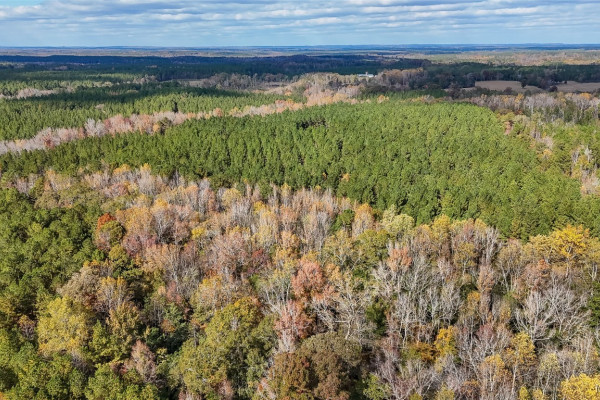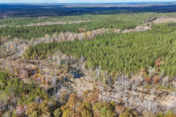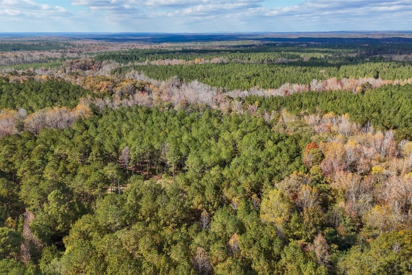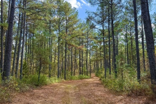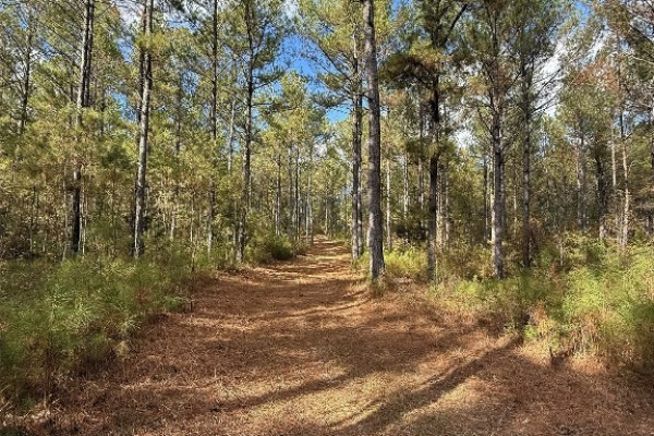 The property offers a great mix of rolling pine ridges, hardwood bottoms, and year-round water. Seven creeks run through the land, six smaller branches and one larger creek, along with two duck holes that add excellent waterfowl hunting opportunities. A strong internal road system ties it all together, leading to nine established food plots, most of which have already been planted. The layout of the timber and terrain makes this tract hunt big, holding plenty of deer and turkey year-round.