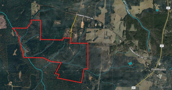Welcome to Rocky Branch 407, a beautiful 407-acre hunting and timber property in Five Points, Alabama. This land has been in the same family for over a century, and it’s been managed the right way every step of the way. Located about 40 minutes from Auburn and roughly an hour and 45 minutes from Atlanta, it’s close enough for easy access but far enough out to feel like real country.