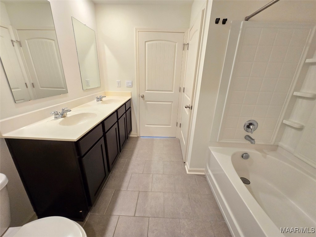 All three bedrooms and the laundry are tucked away upstairs. The primary suite boasts a tray ceiling, walk-in closet, double vanity sinks, and a relaxing garden tub/shower combo. Two additional bedrooms share a full bath, making it an ideal layout for families or guests.