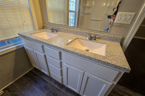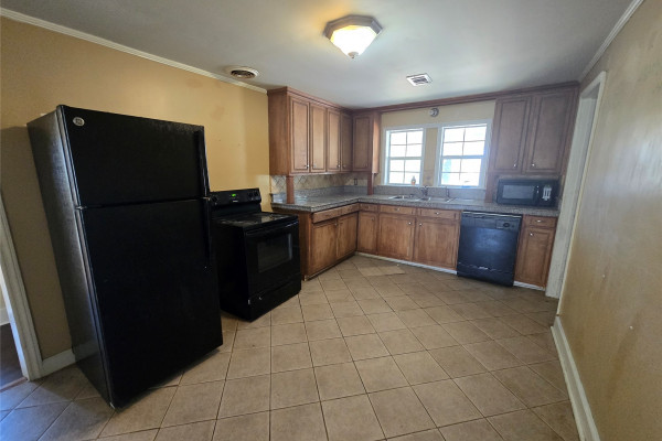 Accessed through the front doors, this larger unit features 4 bedrooms and 3 full bathrooms with an updated kitchen including granite tile countertops, new cabinets, and an open floor plan between the living room and kitchen.