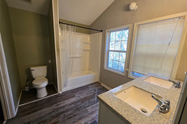 A 2 bedroom, 2 bathroom unit with its own full kitchen and living room. This unit is equipped with space heaters and window units.