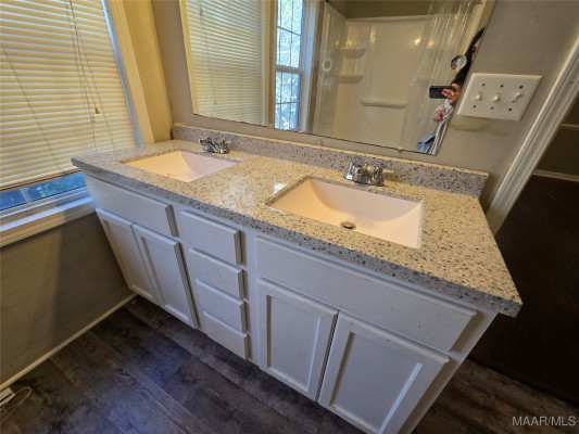 Accessed through the front doors, this larger unit features 4 bedrooms and 3 full bathrooms with an updated kitchen including granite tile countertops, new cabinets, and an open floor plan between the living room and kitchen.