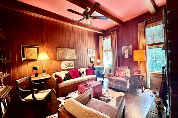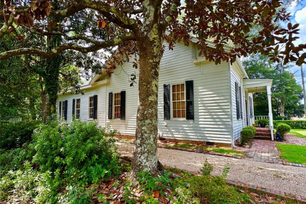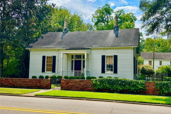 Historic storybook Cape Cod-style cottage built in 1869. This 2214 sq ft. landmark home offers all of the curb appeal you could dream of. Inside, you’ll find the classic layout, complete with high ceilings, a wide central hallway, a formal living room, nicely sized bedrooms, a small but functional kitchen, and a cozy den/dining room with beamed ceilings. Beautiful, original windows, hardwood floors, vintage built-ins, and lovely moldings offer a great deal of charm and make this gem a true showplace with just a little TLC! In the back, a beautiful brick patio is perfect for enjoying morning coffee and bird watching. Surrounded by mature landscaping and blooming garden beds, this cottage is ideal for anyone who loves the warmth and history of New England architecture, as well as the joy of making it truly their own. Greenville is situated just off I-65, halfway between Birmingham and Mobile. With a Robert Trent Jones golf course and excellent hunting and fishing, this house makes a perfect weekend getaway or would be a fantastic Airbnb. This is more than just a house—it’s a piece of history ready for its next chapter.