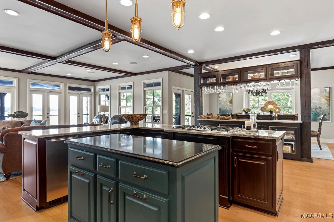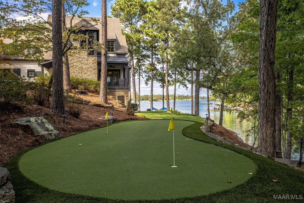 Welcome to your dream lake home — a stunning 4-bedroom, 4.5-bath retreat that blends high-end comfort with resort-style amenities. Perfectly situated on the water’s edge, this beautifully designed residence offers panoramic lake views with 546 ft of water frontage and spacious indoor-outdoor living. Step inside to an open-concept floor plan featuring soaring ceilings, abundant natural light, and elegant finishes throughout. The chef’s kitchen boasts of premium appliances, a large island and seamless flow into the expansive living and dining areas. Outside, enjoy multiple seating areas, all just steps from the water. Practice your short game on your very own private putting green, then unwind by the fire pit. Enjoy soaking in the sun on the dock that is outfitted with a 12,000 lb boat lift. Enjoy all of the amenities that The Ridge has to offer; access to The Ridge Club, pools, tennis, pickleball, nearby marina, beach park and lakeside trails and picnic areas.