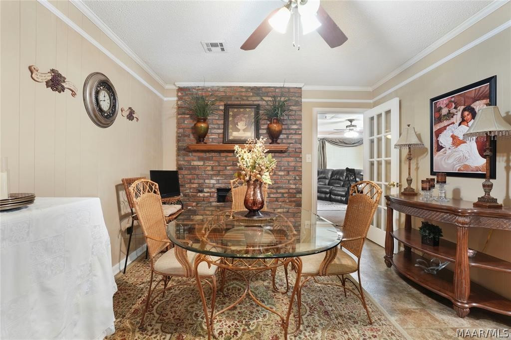 Enjoy cozy meals in the formal dining room, complete with a fireplace, adding warmth and a touch of sophistication to the space.