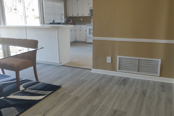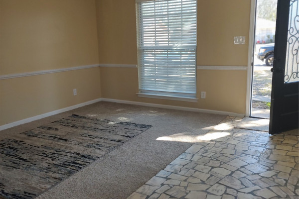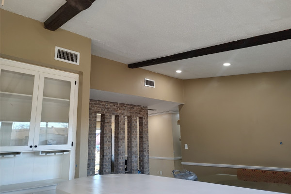 Inside, you’ll find modern touches everywhere: recessed lighting, new ceiling fans, and updated light fixtures. The home offers 3 bedrooms and 2 bathrooms, along with new carpet, new paint, a refrigerator, modern kitchen faucets, and more. Recessed lighting in the dining room, living room, and hallway adds a contemporary feel.