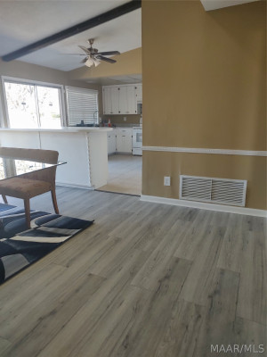 Inside, you’ll find modern touches everywhere: recessed lighting, new ceiling fans, and updated light fixtures. The home offers 3 bedrooms and 2 bathrooms, along with new carpet, new paint, a refrigerator, modern kitchen faucets, and more. Recessed lighting in the dining room, living room, and hallway adds a contemporary feel.